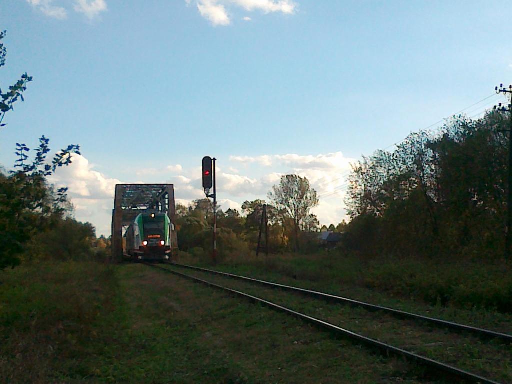 Strabla - szynobus na moście kolejowym. Ostatni tego dnia, wieczorny kurs do Czeremchy…