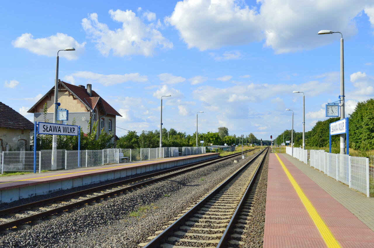 Sł w budynku stacji zlikwidowana Sł1 zlikwidowana (okazały, ceglany budynek) |
