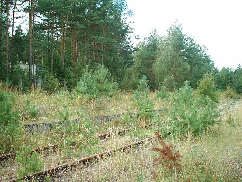 | Opis infrastruktury: Peron zachował swój kształt, ale nie można by go używać, ze względu na bardzo duże zarośnięcie peronu i toru licznymi iglastymi drzewkami. (info: Daniel Myszk, 30-04-2010) |