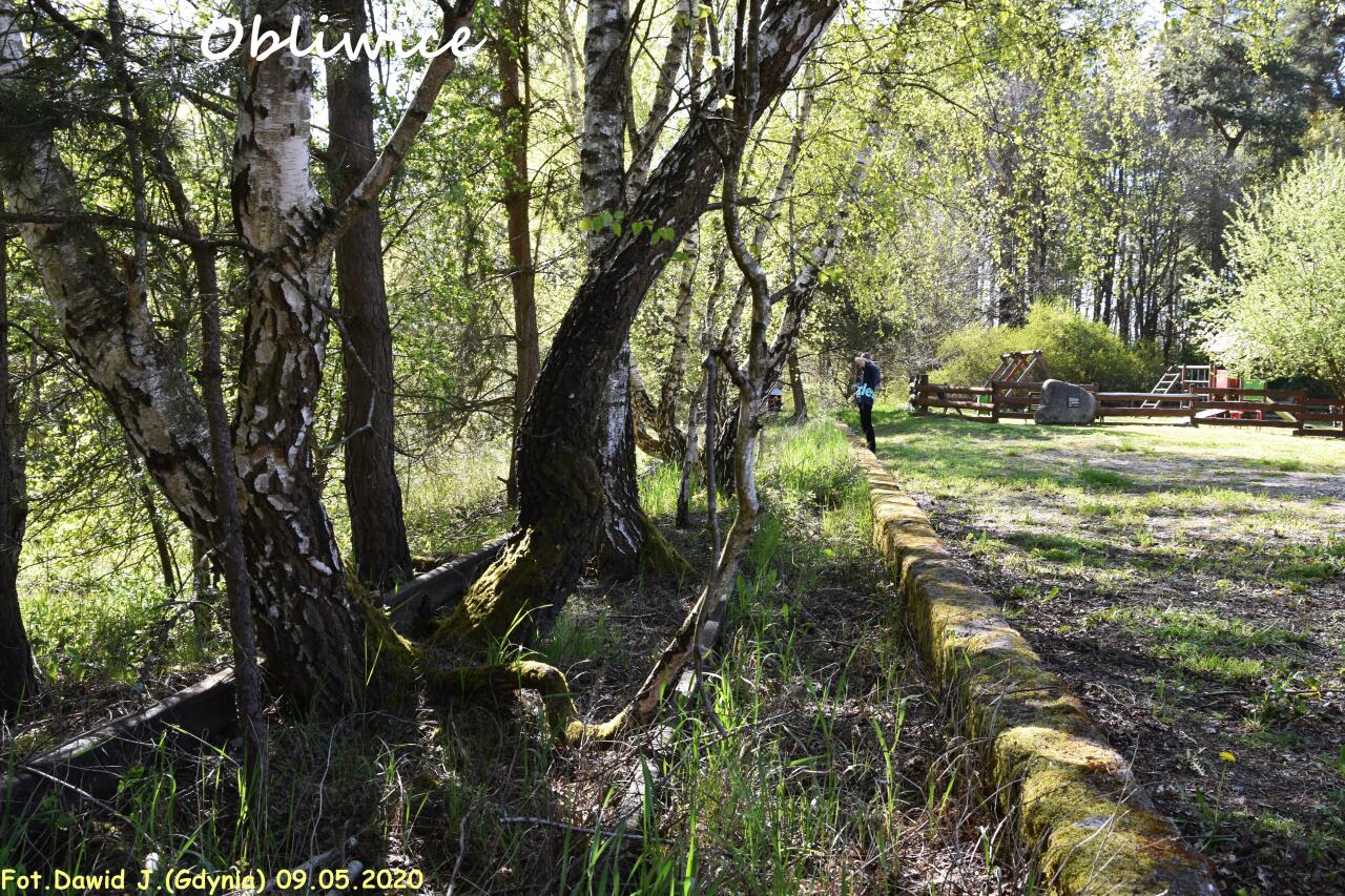 | Na peronie nieczynnego przystanku stoi głaz z tabliczką "Zabytkowa stacja pkp Obliwice". (info: Bartek Jaszczur, 18-07-2011). |