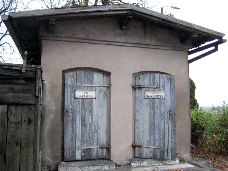 Stare, jeszcze niemieckie napisy na budynku stacyjnym w Krobi.