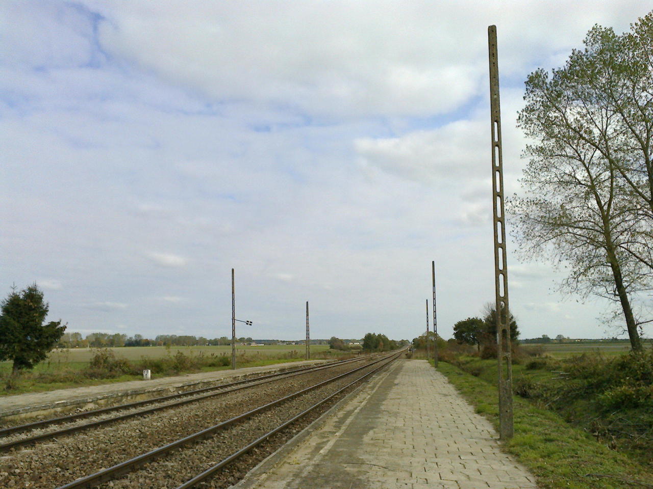 Przy zachodnim krańcu peronu, jeszcze kilka lat temu widoczne były ślady po nasypie wiaduktu nad torami. Zniszczony przez wycofujące się wojska rosyjskie w 1915 roku, nigdy już nie został odbudowany. Drogę poprowadzono dzisiejszym śladem, a nasypy traktowano jako coś w rodzaju kopalni piasku, do ich zupełnego zniwelowania.