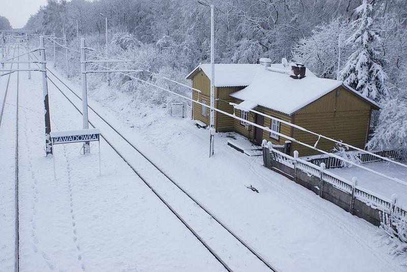 Opis ogólny: 6 torów w tym jeden prawdopodobnie nieużywany. Zarośnięta bocznica do zakładów drzewnych-być może rozebrana. Do lasu odchodzi równolegle z linią szerokotorową bocznica do magazynów paliwa (powstały w latach 50, miały służyć wojskom Układu Warszawskiego więc do końca lat 80 były tajne, obecnie administrowane przez firmę Naftobazy). Podobno magazyny dysponują własnymi spalinówkami. (info: Karol Romaniuk, 2005-07-18) Firma Naftobazy posiadająca w Zawadówce magazyny paliwa użytkuje lokomotywę spalinową T448p (info: Karol Romaniuk, 2005-11-05) Szerokiego toru jednak na stacji nie ma. Zaczyna się on dopiero w lesie do którego odchodzą dwa tory normalne (jeden z nich zamknięty, dla sygnalizacji położone na szynach dwa podkłady tarasujące) (info: Karol Romaniuk, 2005-09-02) Opis budynków: W części budynku mieszkanie, poczekalnia i kasy nieużytkowane ale zamknięte i zabezpieczone przed dewastacją. (info: Karol Romaniuk, 10-03-2009) |
