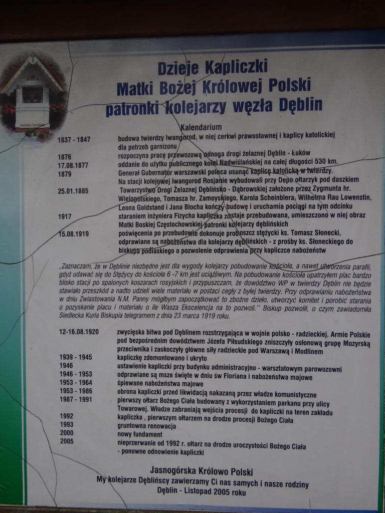Lokomotywownia wachlarzowa o 32 stanowiskach o powierzchni zabudowy ok. 7000 mkw. Budynek biurowy. Kapliczka Matki Boże Królowej Polski. Widok w kierunku Garwolina i Łukowa. 104,0 km/ 62,2 km.
