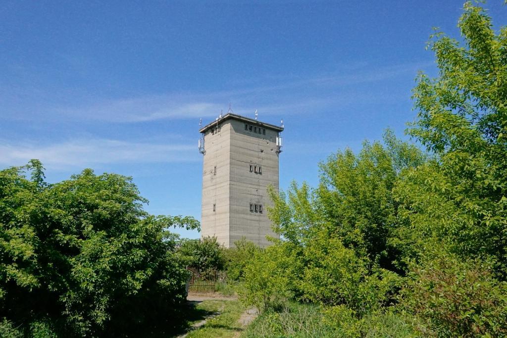 Wieża wodna stanowi bardzo dobrze rozpoznawalną dominantę.