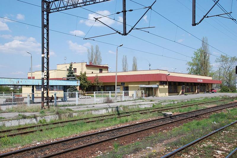 Opis ogólny: Budynek stacji częściowo jest do wynajęcia. Plac przed dworcem należy obecnie do hurtowni materiałów budowlanych. W budynku od strony peronów działa kasa należąca PKP Cargo. Po południowej stronie stacji znajduje się baza PKP Energetyka. (info: Kamil, 17-05-2011) Opis infrastruktury: Infrastruktura to jest tory dodatkowe są zdatne do eksploatacji. Urządzenia SRK są w dobrym stanie. Jeśli chodzi o budynek dworca nie jest on zdewastowany. Natomiast płyta peronu wyspowego oraz wiaty przypominają trawnik lub dobrze zarośniętą łąkę. Wiaty przystankowe przedstawiają również obraz nędzy i rozpaczy. Przed dworcem na placu znajduje się czynny sklepik spożywczy. Wejście na perony od strony płyty dworca PKS uniemożliwia siatka. (info: Sajan, 2007-11-02) Opis budynków: Budynek dworcowy nie zdewastowany zaadaptowany całkowicie na dworzec PKS. Wewnątrz są widoczne ślady pełnionej kiedyś funkcji kolejowej tzn kasy, delegatura itd. Bryła budynku to typowa socrealistyczna konstrukcja z dachem krytym papą. Budynek zbudowany na planie litery L. (info: Sajan, 2007-11-02) |