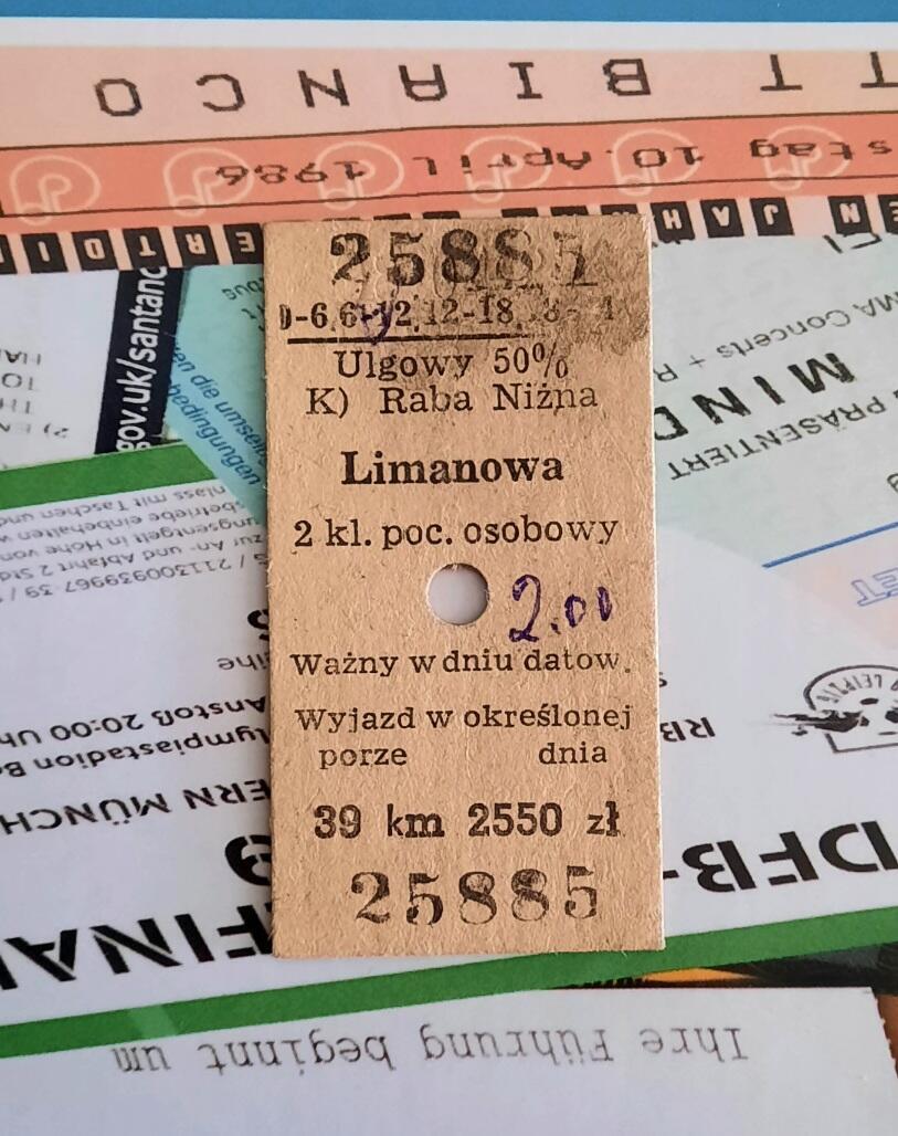 Bilet kartonikowy wydany na przystanku Raba Niżna.