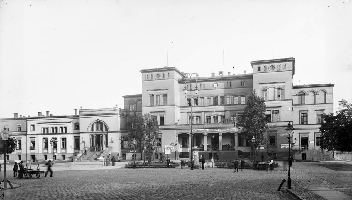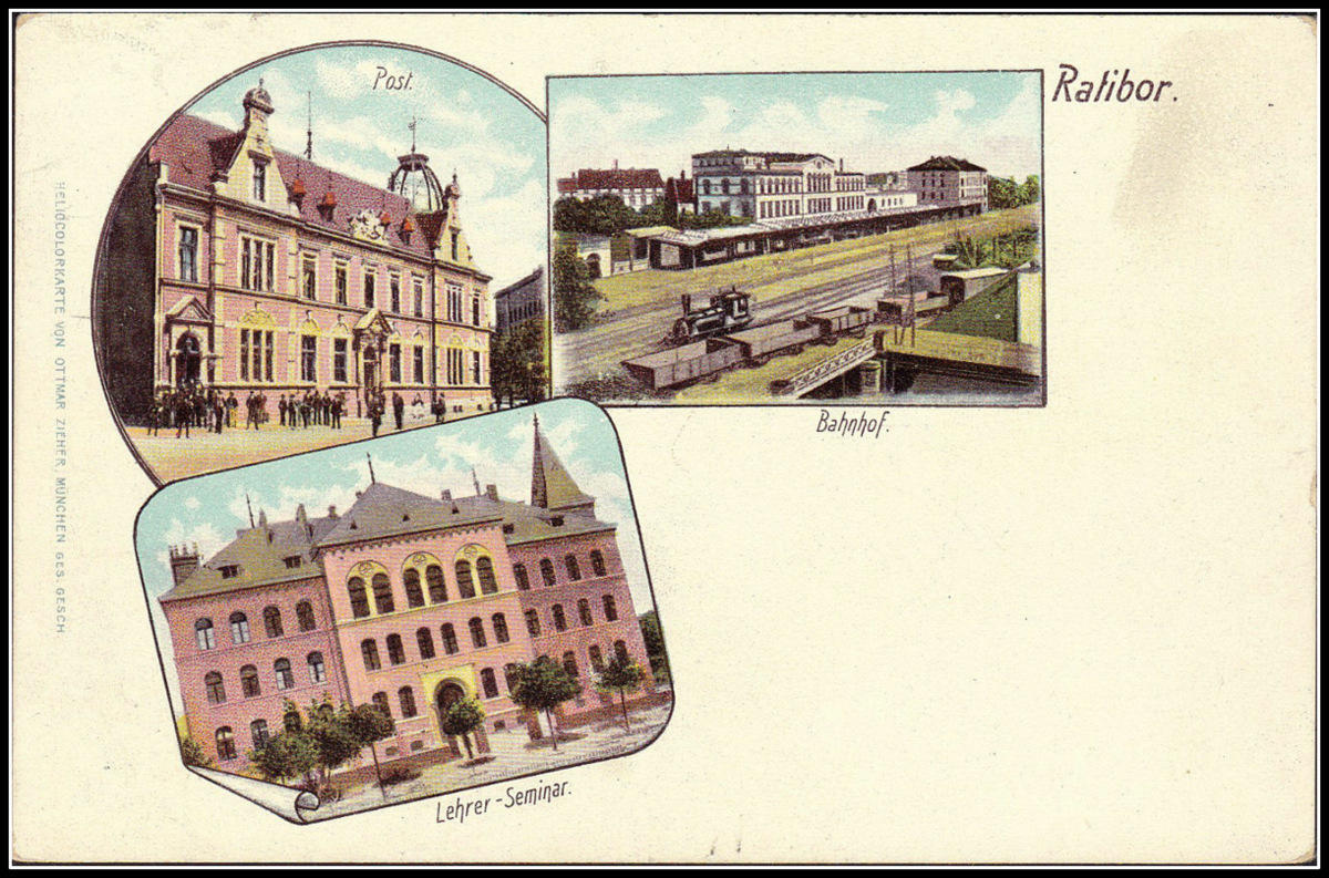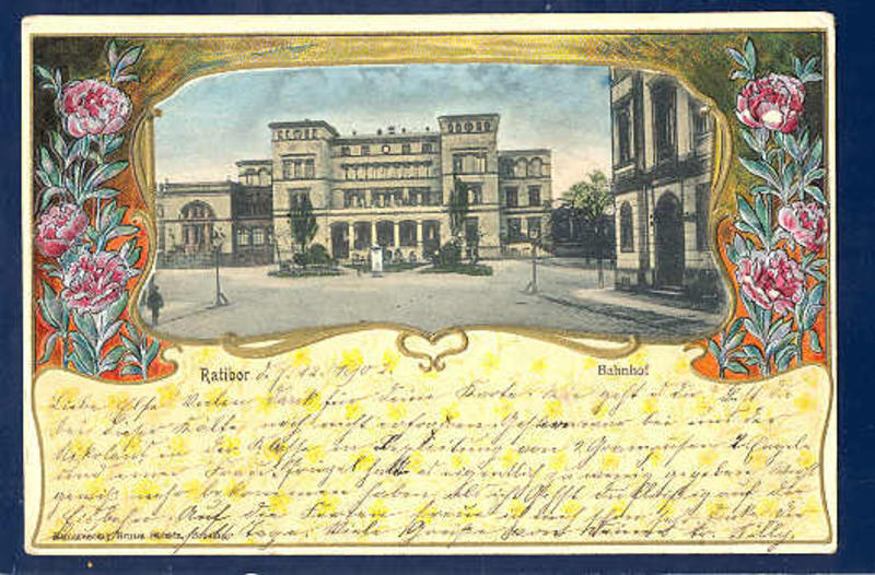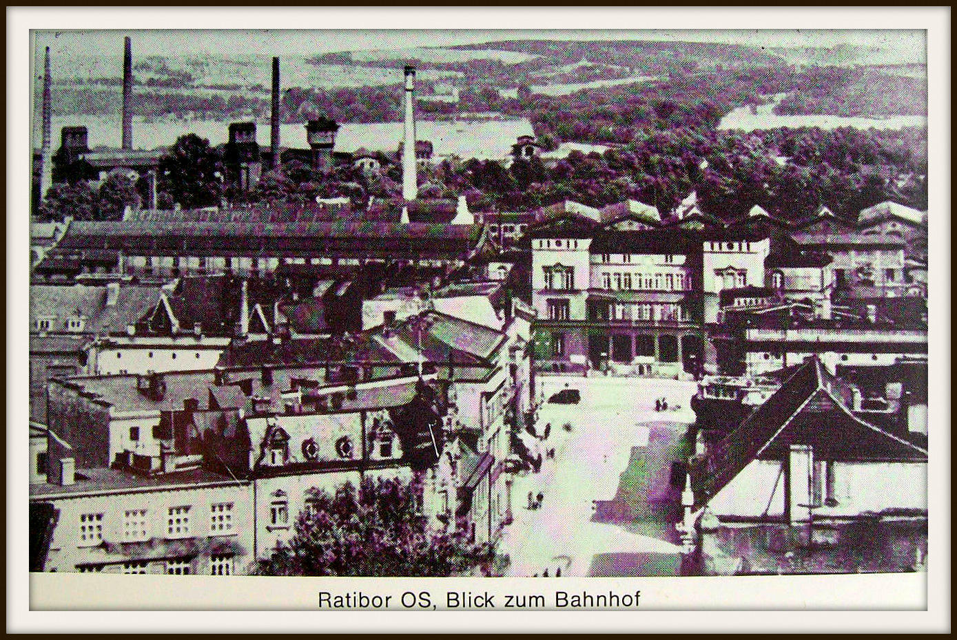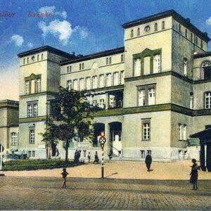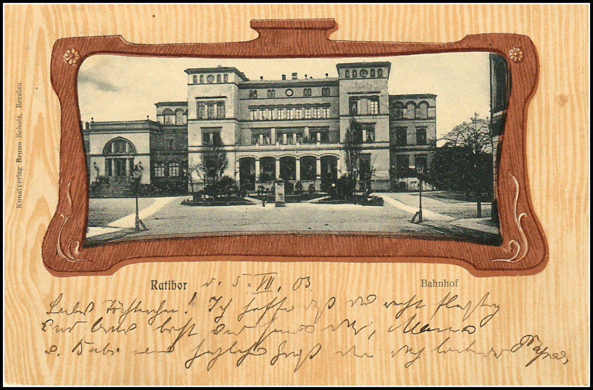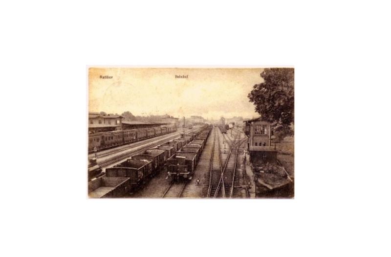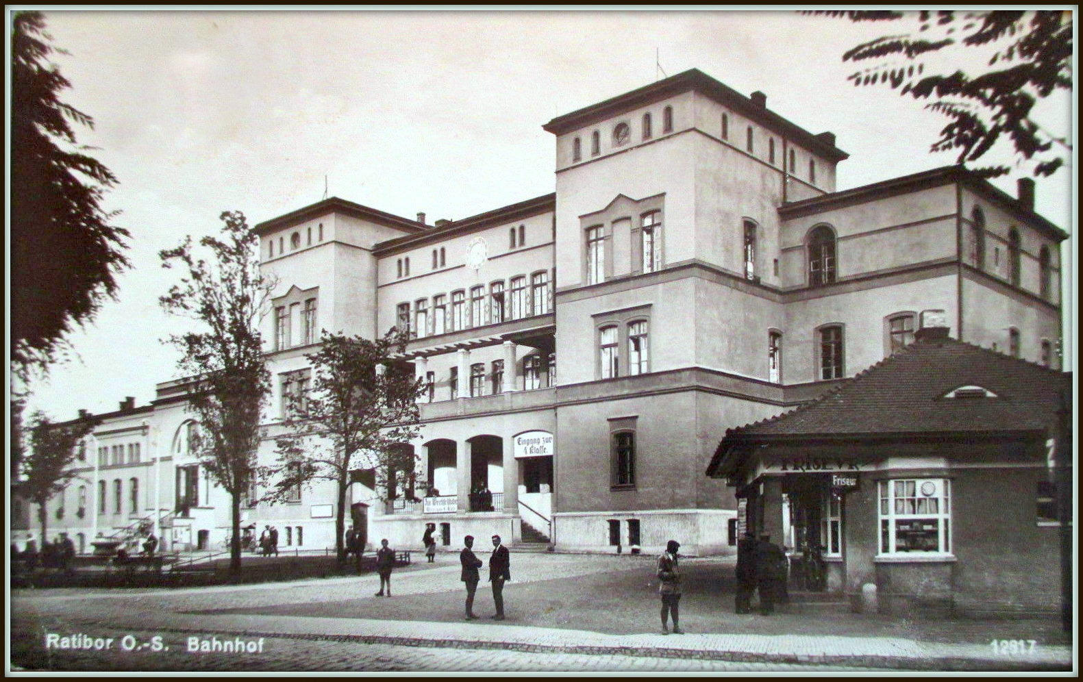 Dworzec w Raciborzu ok. roku 1918. Obiekt zniszczony w 1945 roku przez armię czerwoną. Widok w kierunku wschodnim.