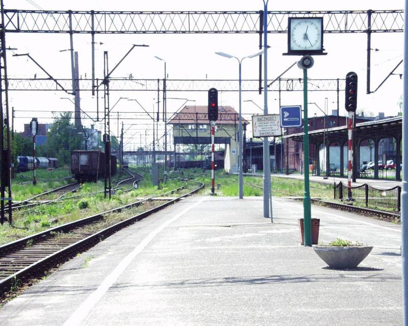 Racibórz. Peron 3, w tle nastawnia dysponująca Ra. Widok w kierunku południowo-zachodnim: Chałupki i Racibórz Studzienna (dalej Racławice Śląskie i Krzanowice).