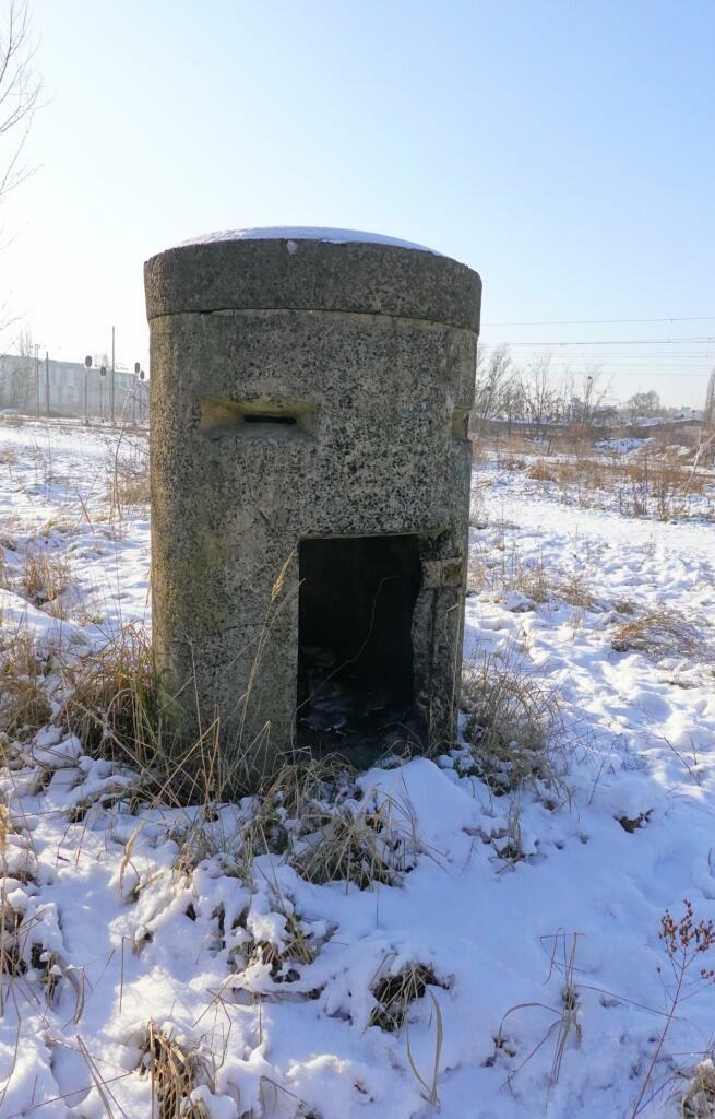 Jednoosobowy bunkier (Einmannbunker) stoi między wieżą wodną, a torami. Pomiędzy nimi była parowozownia wachlarzowa. W lewo Poznań Główny, w prawo Wrocław, Kluczbork, Kunowice.
