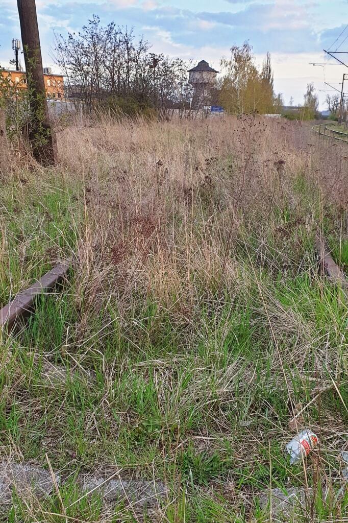 Prawdopodobnie jest to końcowa pozostałość bocznicy do dawnej lokomotywowni. Około 10 metrów dalej tory zostały już zdemontowane.