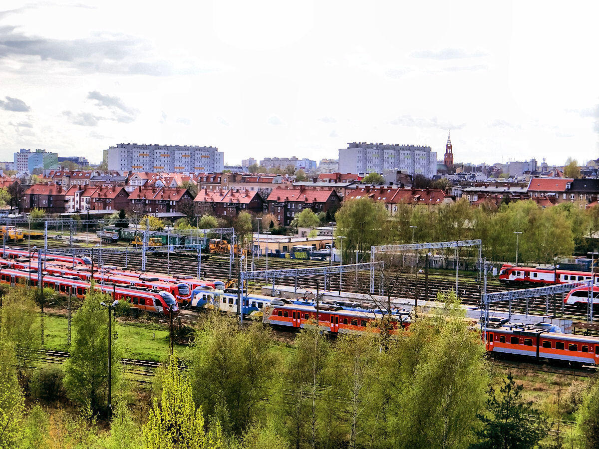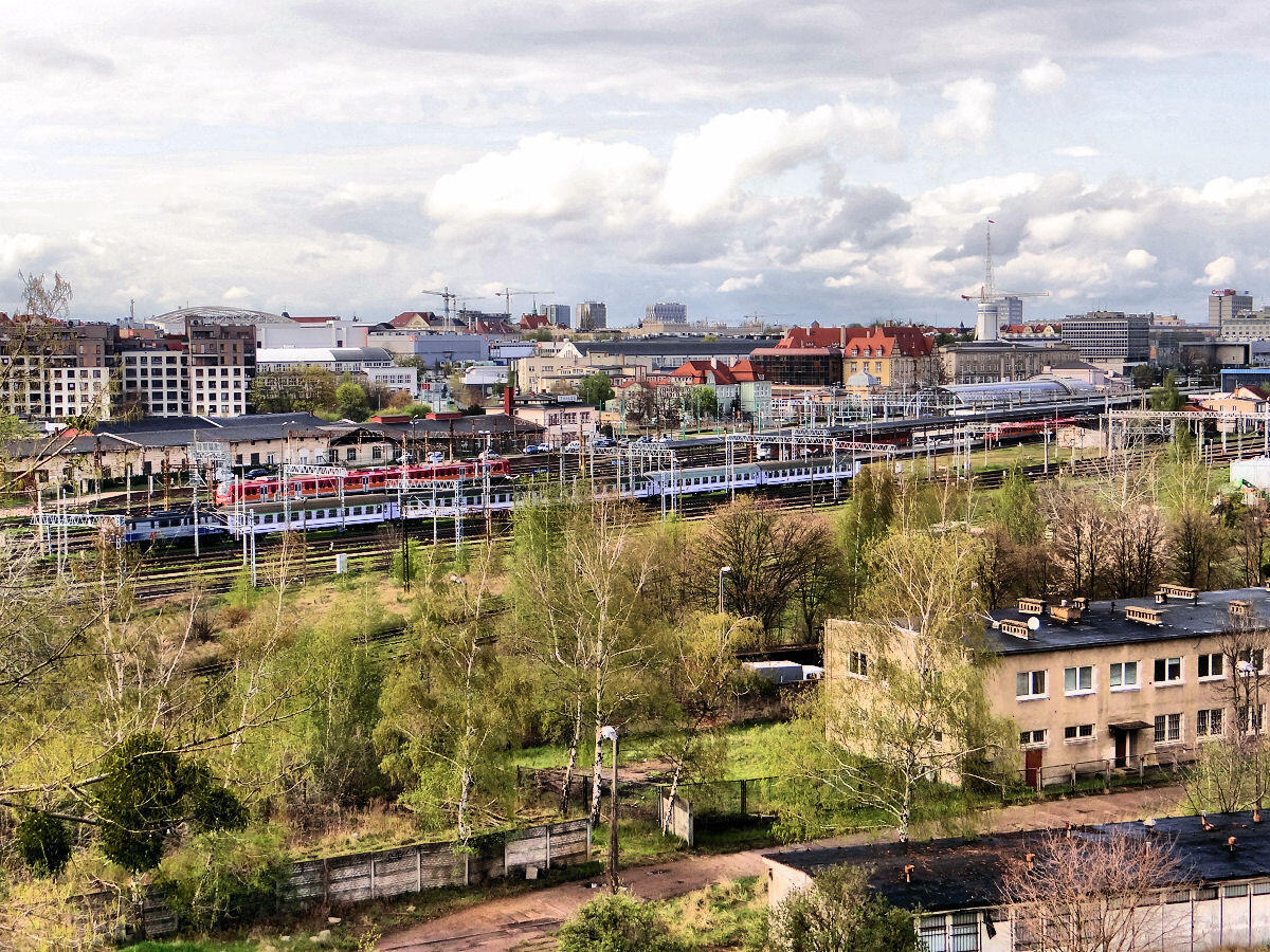 Fragment torowisk Poznania Głównego Towarowego (u spodu), dalej "Wolne Tory" oraz część stacji Poznań Główny. Od kiedy pamiętam, obszar ten zawalony był taborem, z tym, że torów było więcej, a i od odstawionych wagonów się tutaj roiło.