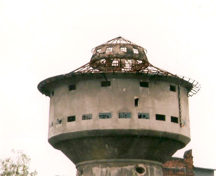 Poznań Gł. Towarowy. Wieża wodna po pożarze.