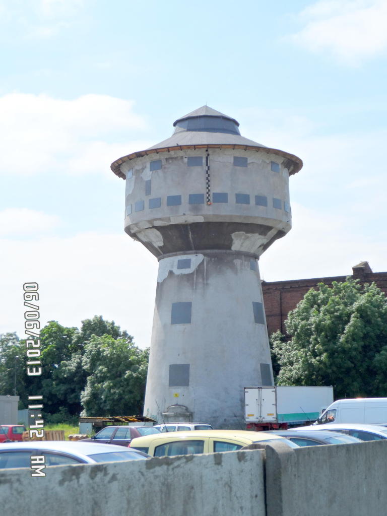 Poznań Gł. Towarowy. Wieża wodna widok z ul. Roboczej.