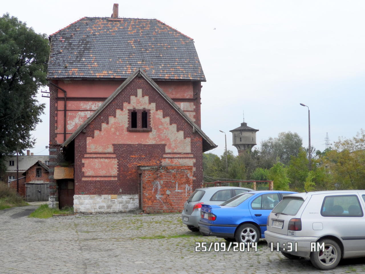 Kolejowa wieża wodna, widok z ul. Ciepłodolskiej. Wschodnia część stacji.
