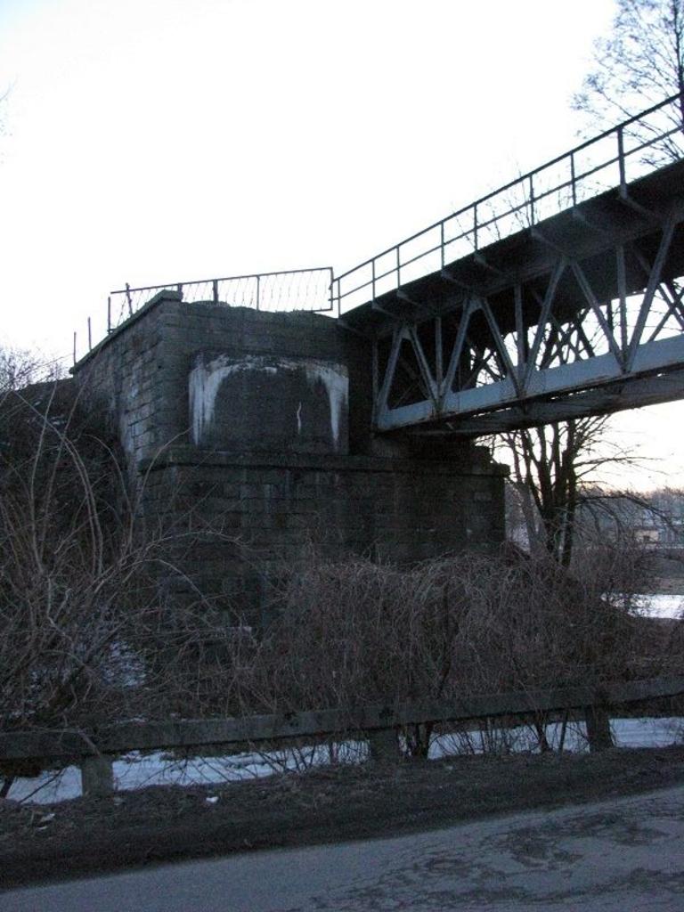 Przyczółki mostu od strony Lublina. Widać, że przyczółki mostu są szerokie - na tyle by zmieścić drugi tor.
