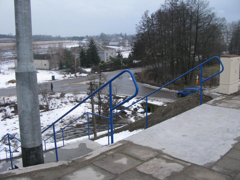Po wymianie wiaduktu na nowy, wymieniono również latarnie peronowe wraz z słupami. W dniu wykonywania tego zdjęcia latarni na peronie było mniej niż dotychczas (mniej więcej od połowy peronu latarni nie było wcale). Widać także nowy tor. W miejscu starego toru na podkładach drewnianych znajduje się tor na podkładach betonowych ze spawanymi szynami (stare szyny były skręcane + podwójne podkłady). W dniu 5 luty 2013 r. peron był taki jak dawniej - nie został wymieniony.