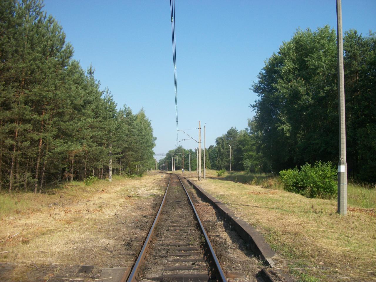 Opis ogólny: Na terenie byłej stacji nie ma już żadnych torów poza jednym (torem przy peronie 1 - jedynym używanym), na którym zatrzymują się pociągi pasażerskie (trakcji elektrycznej oczywiście też nie ma). Drugi peron niszczeje i rosną na nim półtorametrowe iglaki. W miejscu dawnego budynku dworca leży obecnie kupa gruzów. (info: Krzysztof Urbaniec, 2005-03-30) |