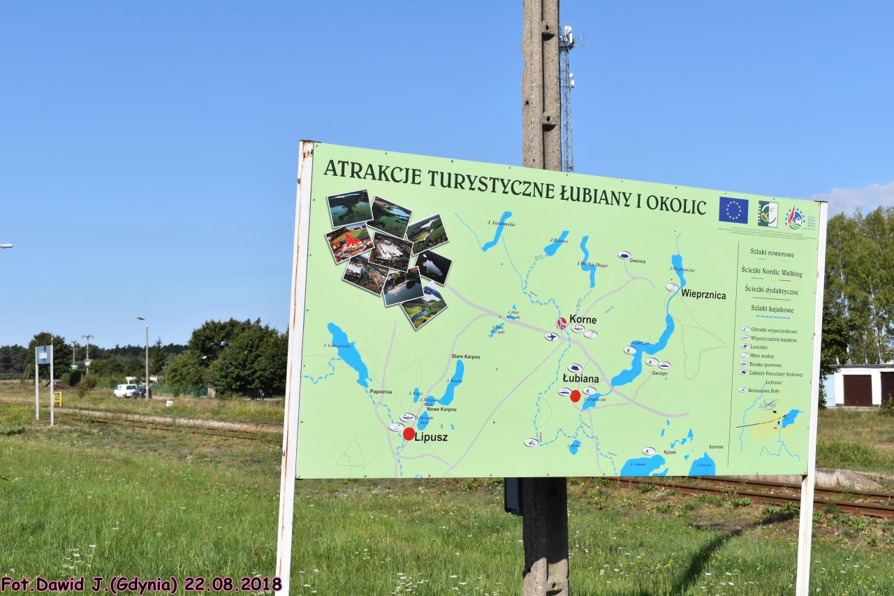 Opis ogólny: Od stacji odchodzi bocznica do zakładow porcelany Łubiana i bazy paliw (info: MuNiO) Od 1998 roku dworzec w Łubianie nie jest wykorzystywany na potrzeby ruchu kolejowego. W 2005 roku dworzec wydzierżawiła gmina Kościerzyna. W tym roku władze lokalne nakładem około 240 tysięcy zł wyremontowały umieszczone na parterze budynku pomieszczenia o łącznej powierzchni ponad 300 m2. Będą one wykorzystywane przez organizacje kobiece jako miejsce zajęć sportowo-rekreacyjnych. W drugim etapie planowany jest remont piwnic z przeznaczeniem na strzelnicę. (info: Anonymus, 2006-10-21) Opis budynków: Dworzec przekazany władzom samorządowym w 2006 roku. |
