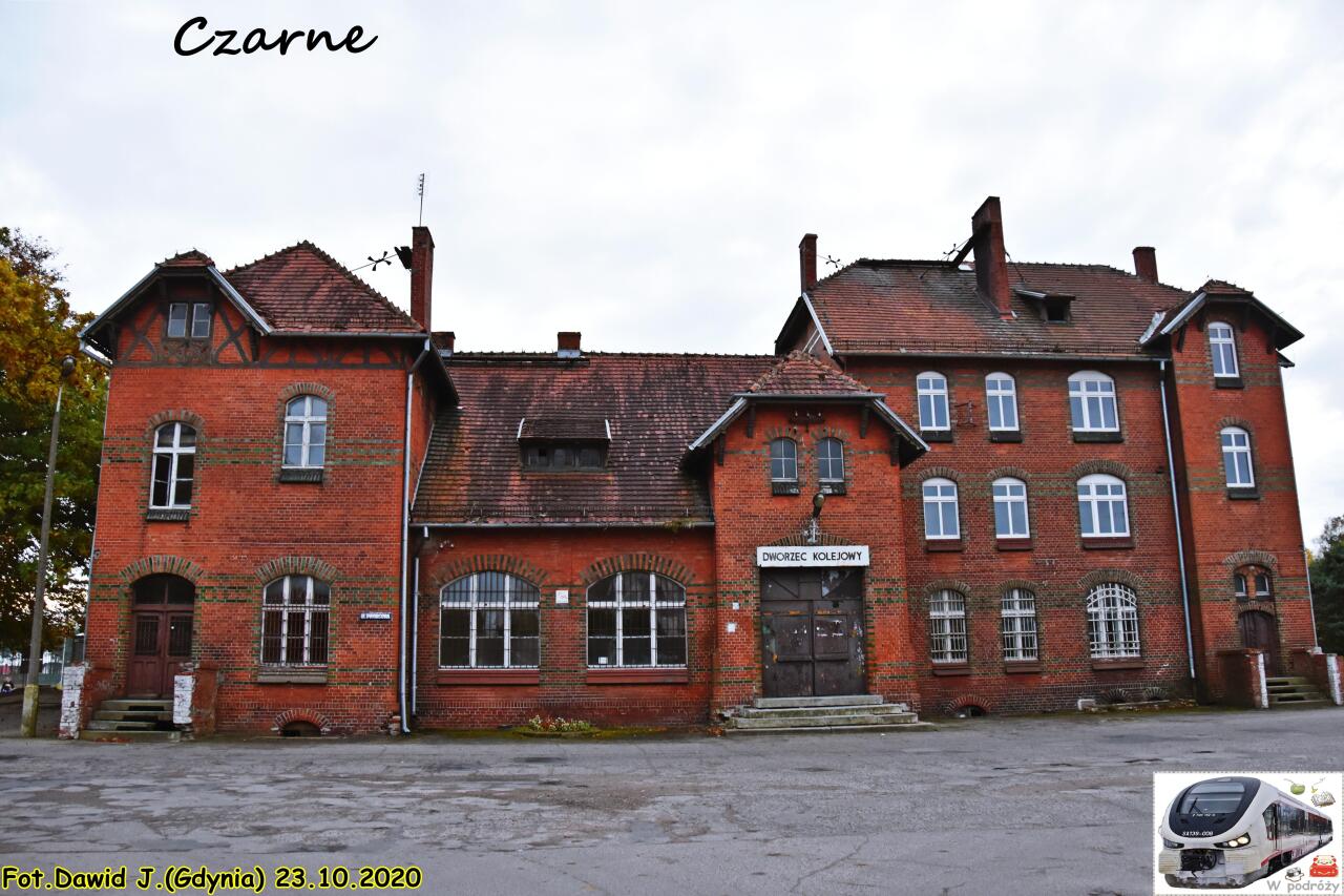 | budynki dworcowe: | Dworzec kolejowy w Czarnem w 2014 roku uległ spaleniu. Najpierw magazyn (potem został zburzony), później lewa część dworca (niezamieszkała). Poczekalnia – małe pomieszczenie od strony miasta. | |