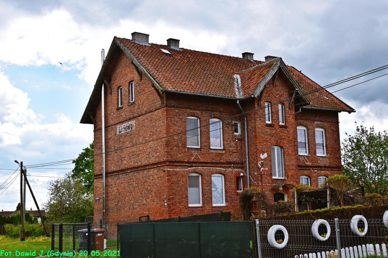Opis ogólny: Drugi tor ślepy obustronnie, budynek stacji zmieniony na mieszkania, magazyn kolejowy zamieszkany, wc używany, stacja zarośnięta (info: MuNiO) Na starym zdjęciu, wiszacym w jednym z zabytkowych budynków w skansenie w Wdzydzach (Kiszewskich), widoczny jest dworzec kolejowy z nazwą Gross Liniew. Z opisu pod zdjęciem wynika, że jest to Liniewo. Zdjęcie jest prawdopodobnie sprzed 1918 r. (info: Andrzej Wysocki, 2005-08-10) w odległości prawie dwóch kilometrów od stacji w kierunku Kościerzyny linia łączy się z nasypem nieukończonej linii Bąk-Liniewo (info: Radosław Palmowski, 19-01-2012) |