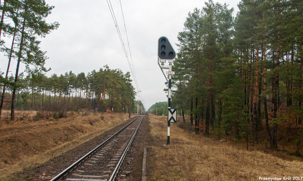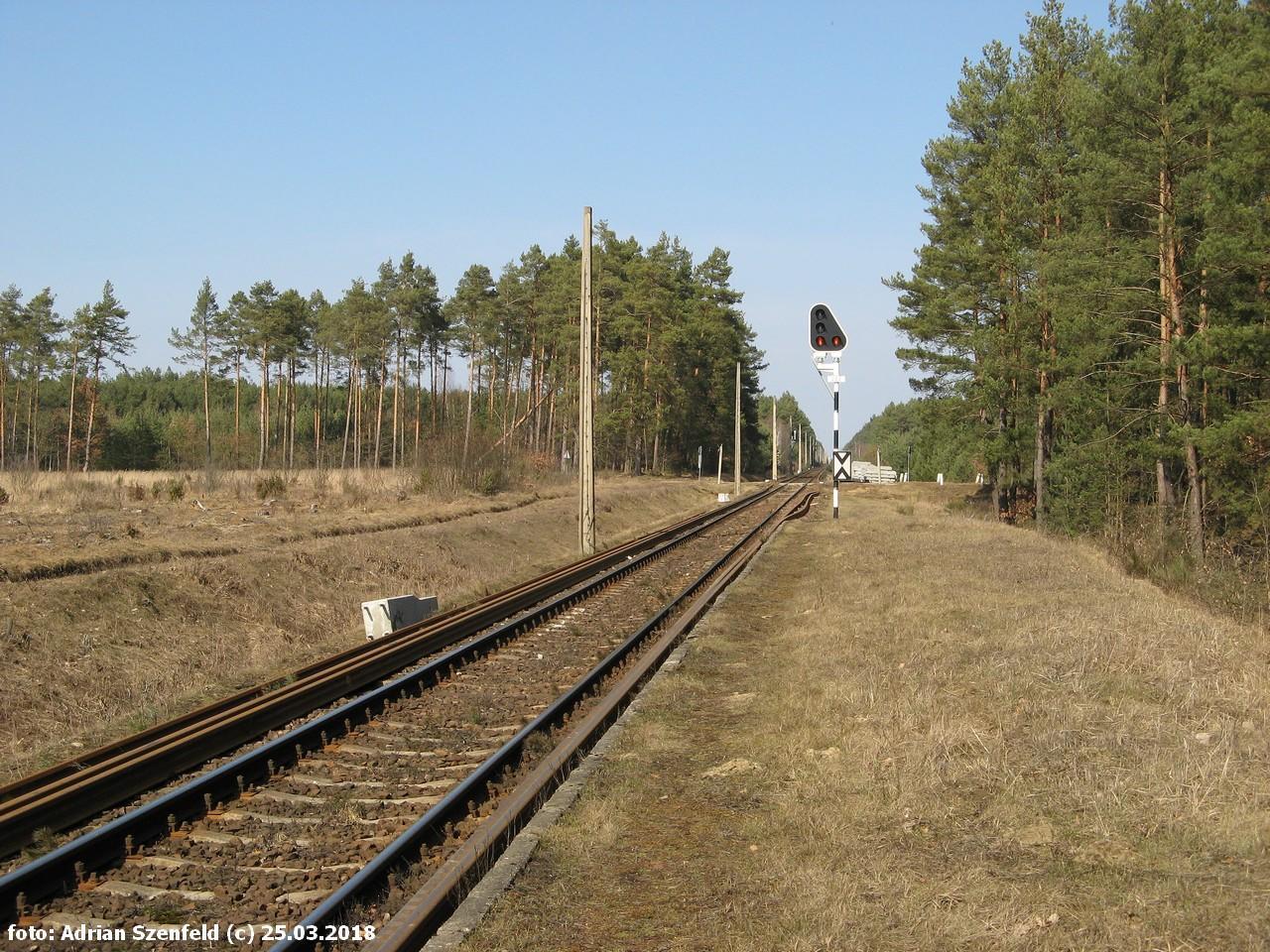 Widok z resztek peronu przystanku Ważne Młyny PKP w kierunku Siemkowic. W tym czasie na LK146 prowadzone są prace remontowe. W tle widać nowe betonowe podkłady.