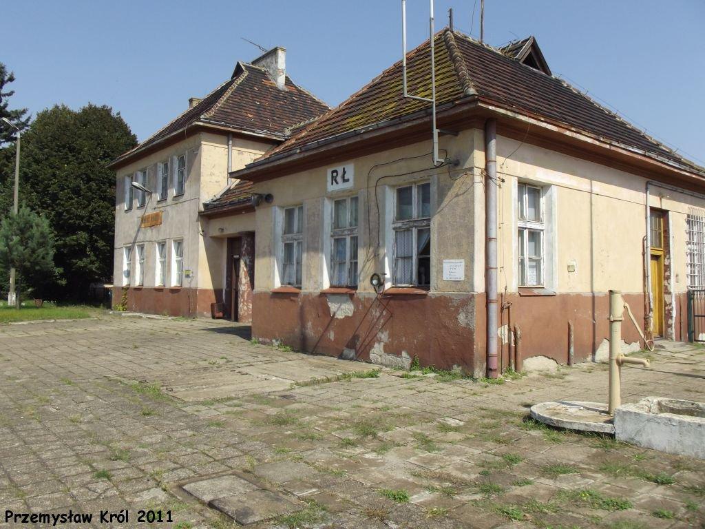 Budynek dworca od strony peronów. Na parterze mieści się nastawnia dysponująca. Widok od strony Chorzewa Siemkowic.