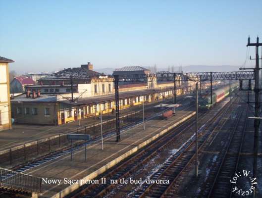 Opis infrastruktury: Lokomotywownia znajduje się na wschód od stacji przy wylocie torów w kierunku Stróż. Stacjonuje w niej kilka SM/SP-42 obsługujących stację oraz linię Nowy Sącz - Chabówka i Krynica - Stróże. Jest na stałe chyba jeden elektrowóz, ale stoi na takim torze dostawczym przy murze z ZNTK, bo sama lokomotywownia nie jest zelektryfikowana. (info: Robert Tomasik, 12-10-2004) Perony na stacji mają ok 450m. (info: tomex, 2007-04-26) W ZNTK są 4 przesuwnice, ale żadnej obrotnicy. (info: Robert Tomasik) Kładka dla pieszych stoi przy zachodnim krańcu peronów i jest wykorzystywana przede wszystkim przez pracowników NEWAG-u (dawne ZNTK Nowy Sącz). Podróżni do pociągów stojących przy peronie 2 dostają się za pomocą przejścia w poziomie torów. Kładka pod wpływem ludzkich kroków (zwłaszcza, kiedy porusza się po niej więcej osób) drga w sposób odczuwalny, także przemieszczanie się po niej nie jest zbyt komfortowe, zwłaszcza dla osób, które nie robią tego codziennie. (info: wasiukibic, 26-09-2008) Opis budynków: Na budynku dworca znajdują się dwa bary, poczekalnia, kantor, poczta, przechowalnia bagażu. Obecny gmach dworca kolejowego wzniesiony został z cegły w latach 1908 -1909. Jego secesyjna, wydłużona parterowa sylwetka jest podzielona trzema piętrowymi pawilonami, z których środkowy - stanowiący główne wejście dworcowe - zwieńczony jest łamanym dachem. Elewacja frontowa dworca zdobiona jest bogato sztukaterią. (Info: Piotr Serwin) Na północny - zachód od budynku dworca znajduje się tzw. Stara Kolonia - zespół domów wielo- i jednorodzinnych zbudowanych dla robotników pracujących w ZNTK Nowy Sącz. (info: wasiukibic, 26-09-2008) |