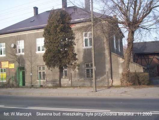 Dawna przychodnia zdrowia, obecnie budynek mieszkalny. Widok od strony ul. Tynieckiej, w kierunku północnym; w prawo dworzec.