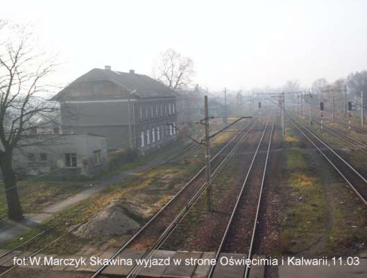 Zachodnia głowica stacyjna i kolejowy budynek mieszkalny. Kierunek zachodni; wyjazdy na Spytkowice/Oświęcim, Kalwarię Zebrzydowską.