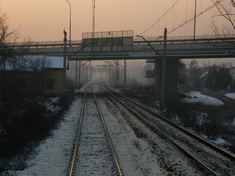 Na wiadukcie ponad torami ul. Krakowska. Wjazd od strony Krakowa. Widok w kierunku zachodnim.