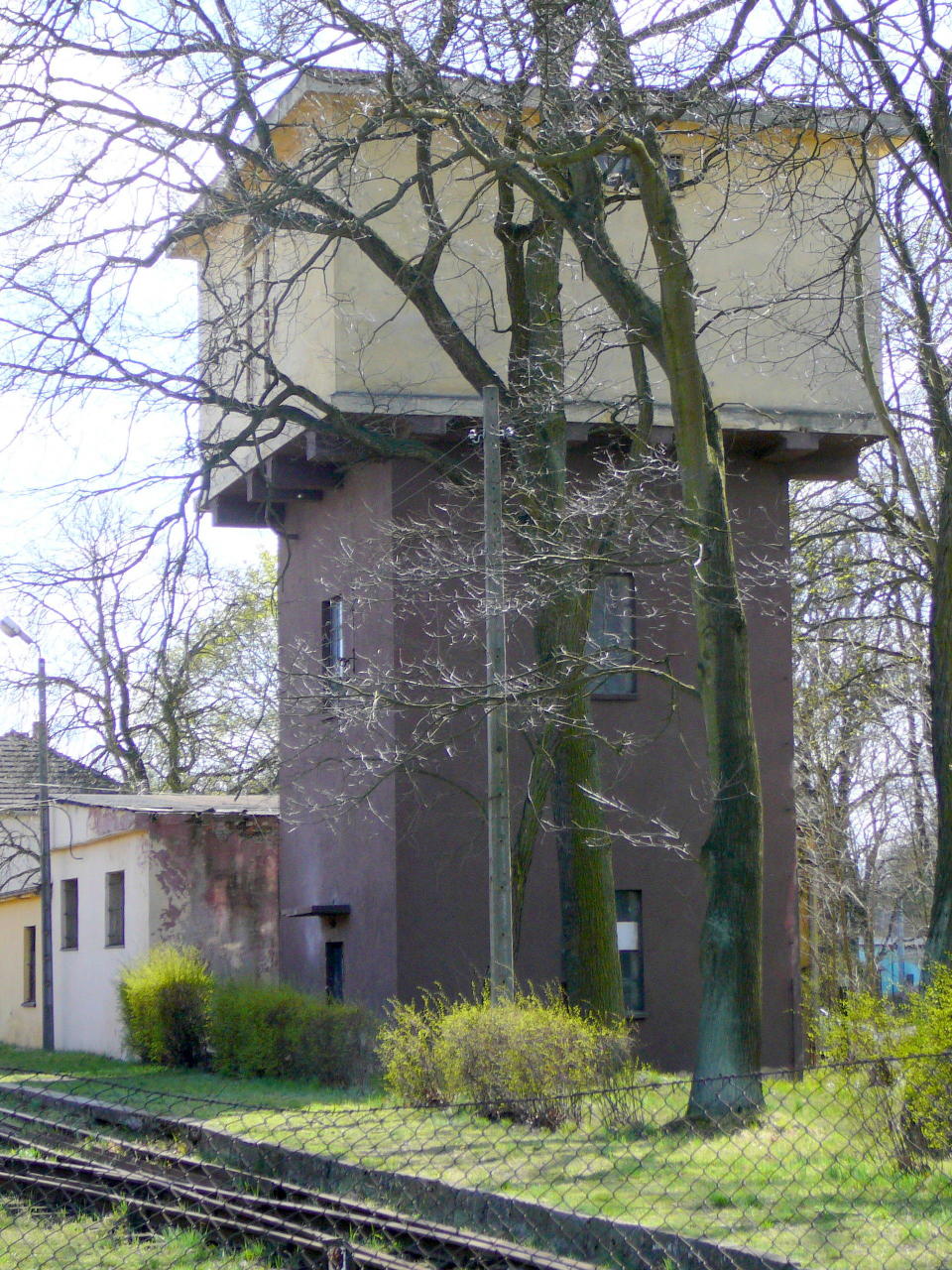 wieża wodna: | nieużywana w tragicznym stanie, ogrodzona, odpadająca elewacja. | |