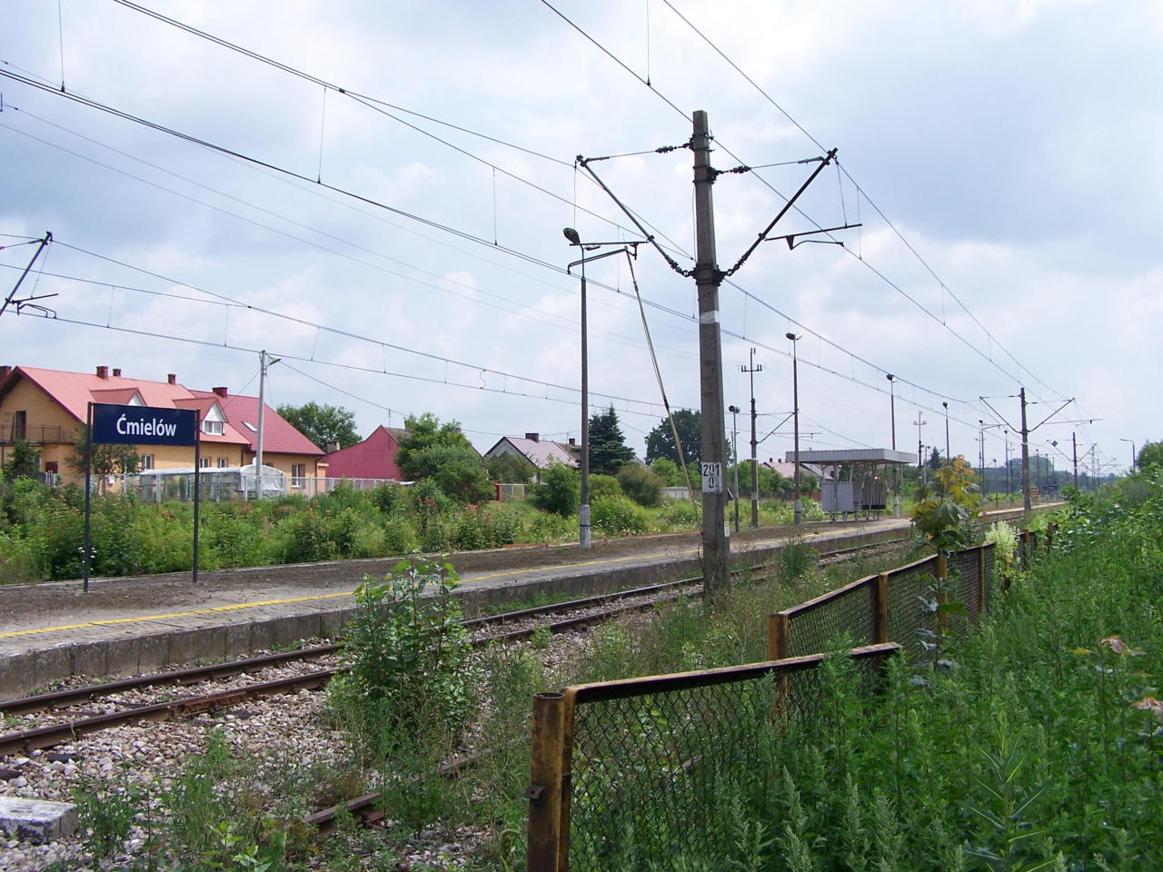 Ćmielów. Widok z peronu w kierunku Sandomierza.