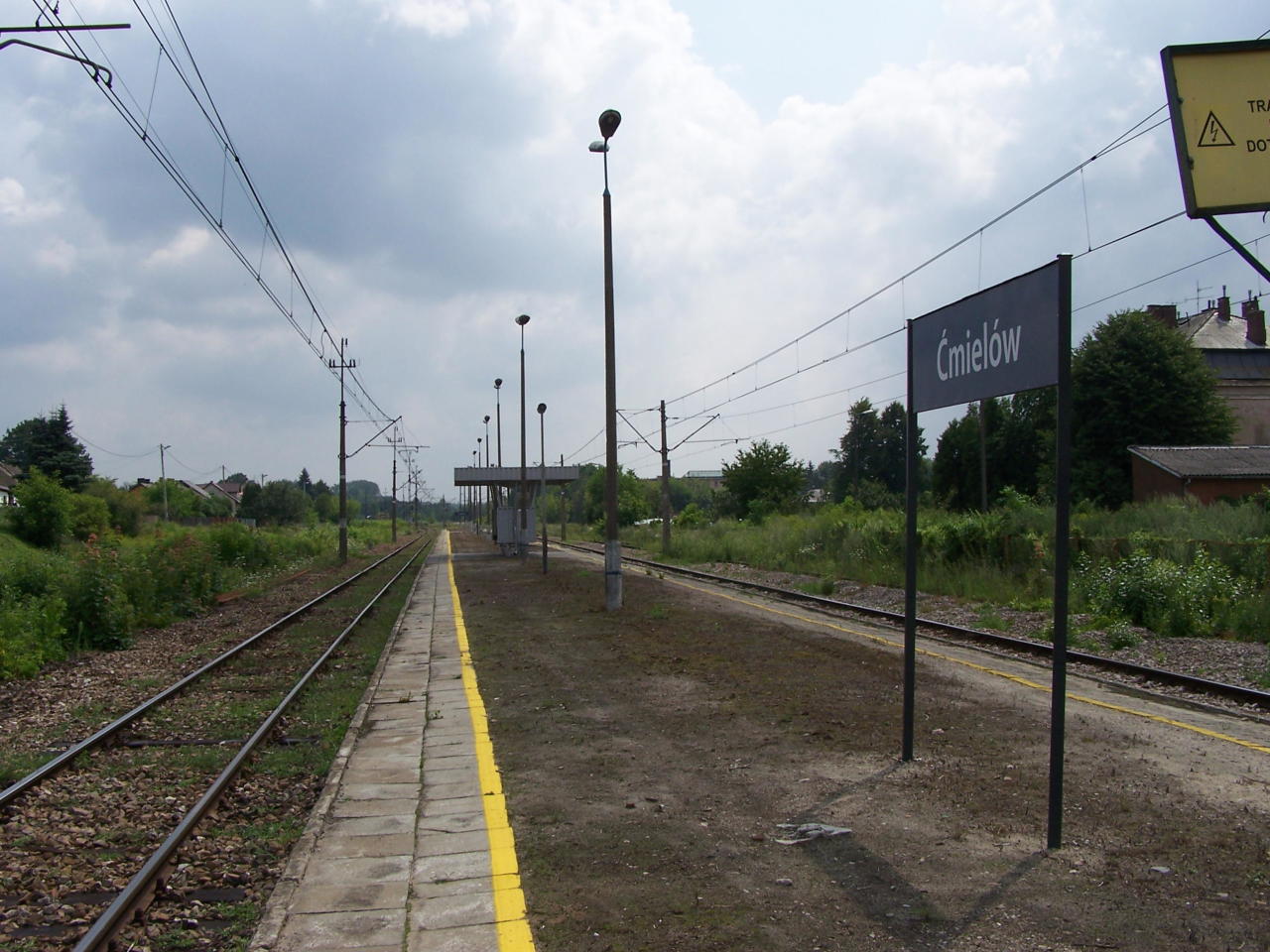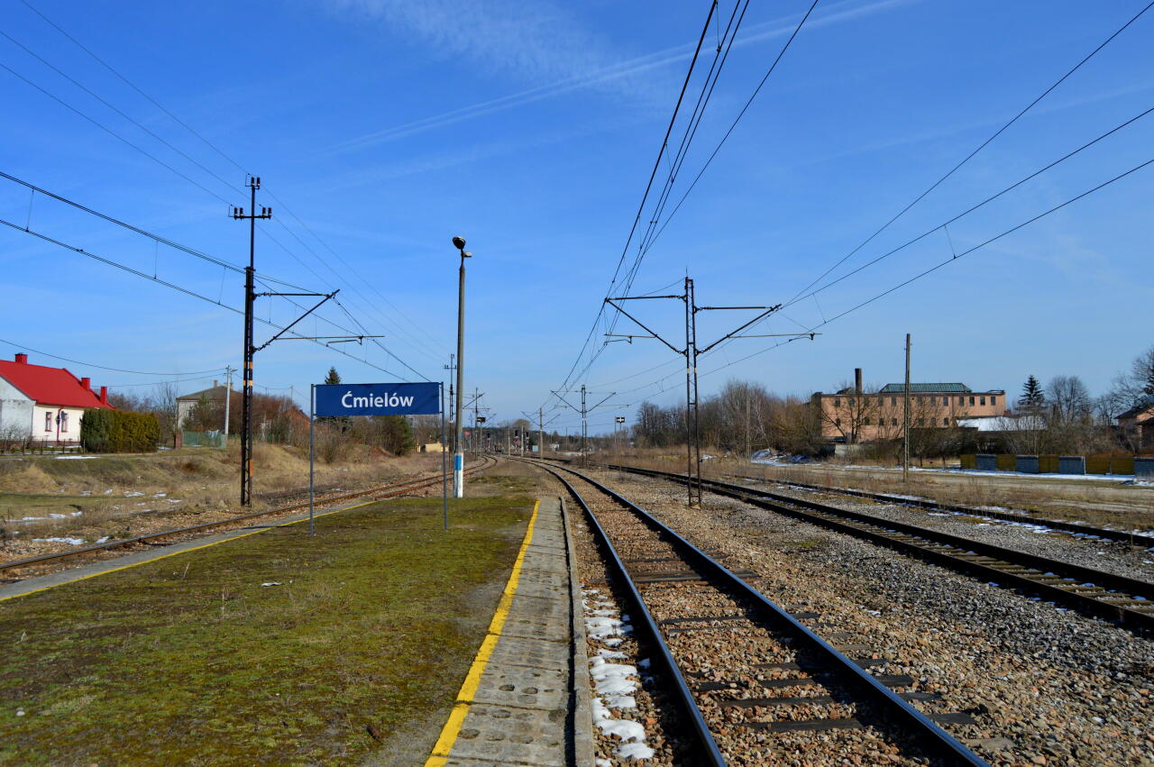 PKP Ćmielów. Widok na zachodnią głowicę stacji, czyli kierunek Ostrowiec Świętokrzyski.