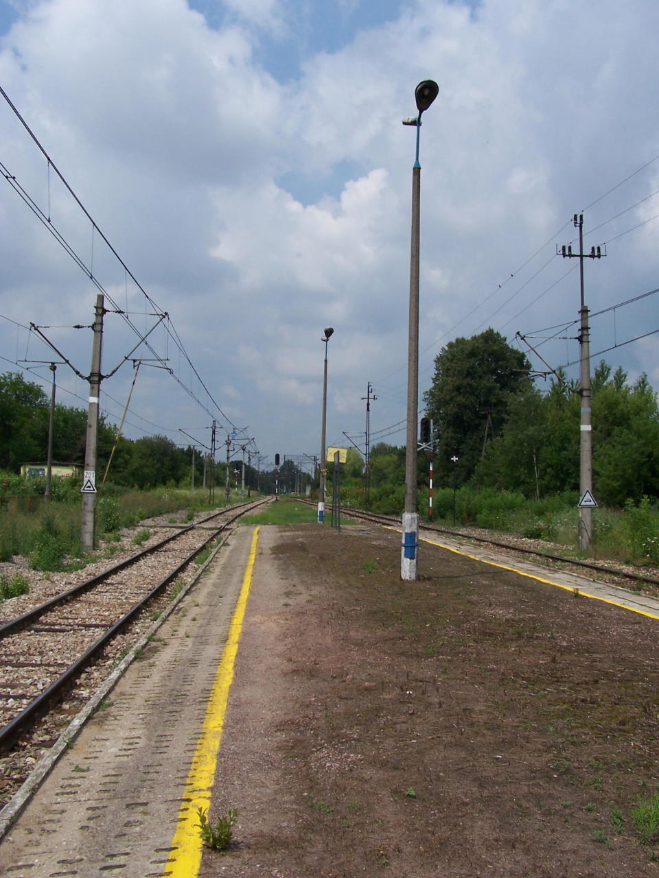 Widok na peron w kierunku Sandomierza. Z prawej, poza kadrem dworzec.