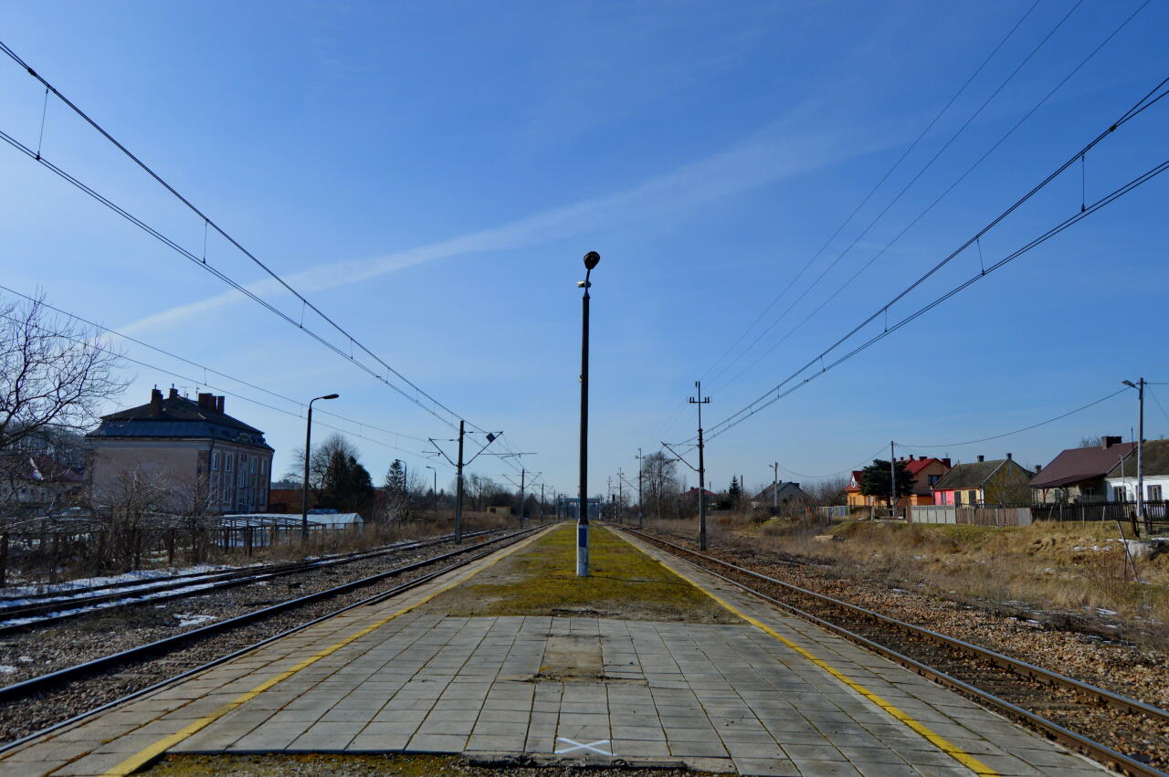 Widok na tory stacyjne w kierunku Ostrowca Świętokrzyskiego.