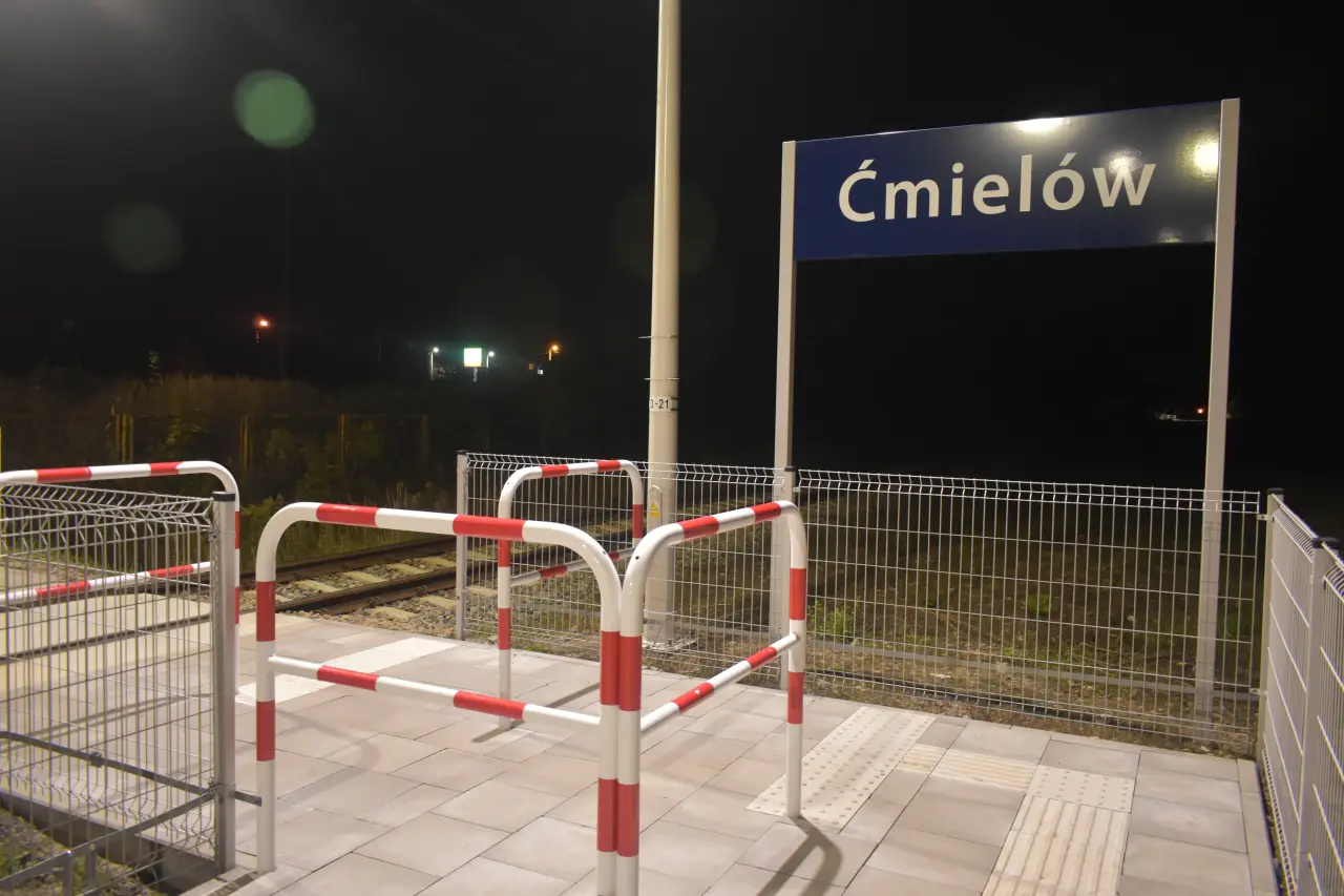 Odnowiony peron stacji Ćmielów. Widok w kierunku Sandomierza.