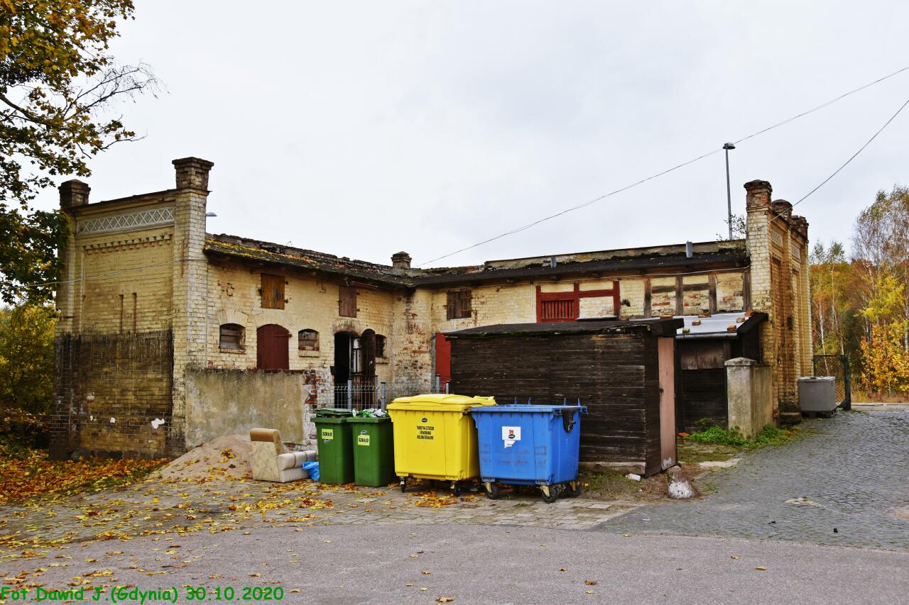 2020-08: Wieża ciśnień w chwili obecnej jest zdewastowana, zbiorniki na wodę są zdemontowane. Obok wieży ciśnień była kuźnia, która została zlikwidowana w latach siedemdziesiątych ubiegłego wieku. 2011-11: Wieża wodna stoi przy torach ok. 50 w kier. Starogardu Gdańskiego. Jest ona przykładem dziwnej maniery w PKP malowania cegieł farbą. Podobne wieże istnieją m.in na stacjach Czersk, Lipka Krajeńska, Rokitki (info: Bolesław Wojtyniak). |