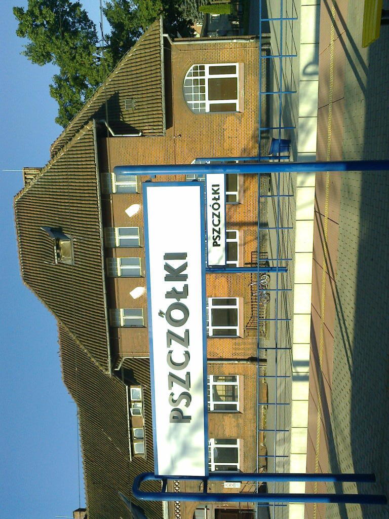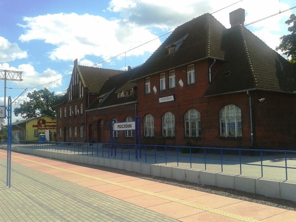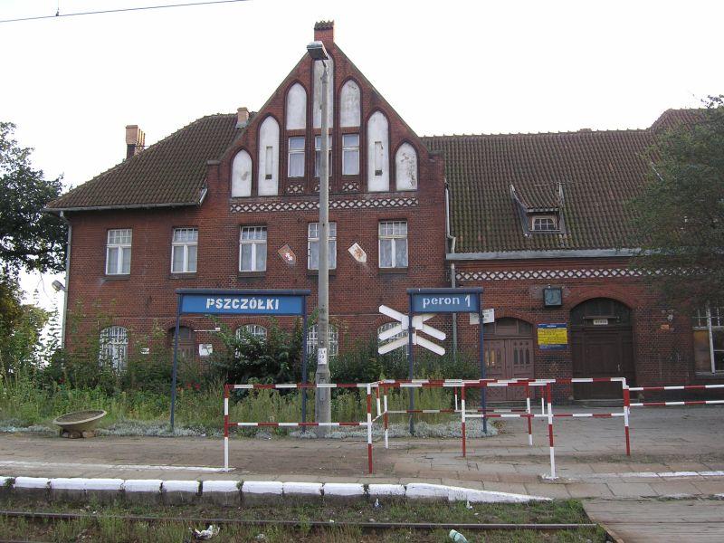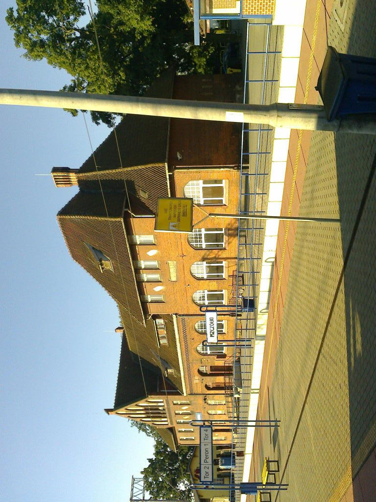 Pszczółki - tył dworca. Całkiem efektowny dworzec w o zachodzie.