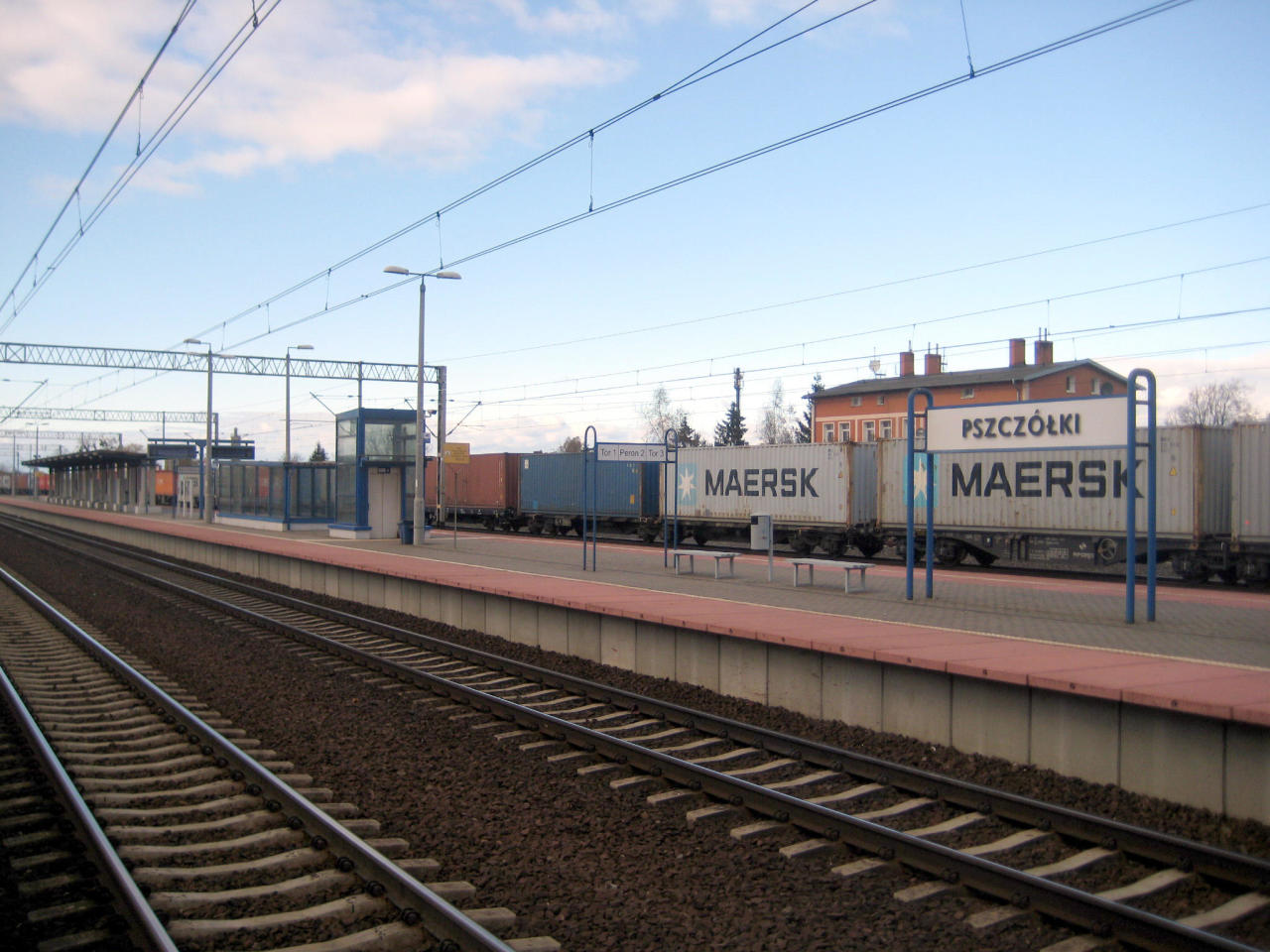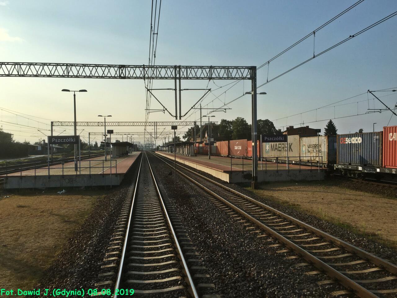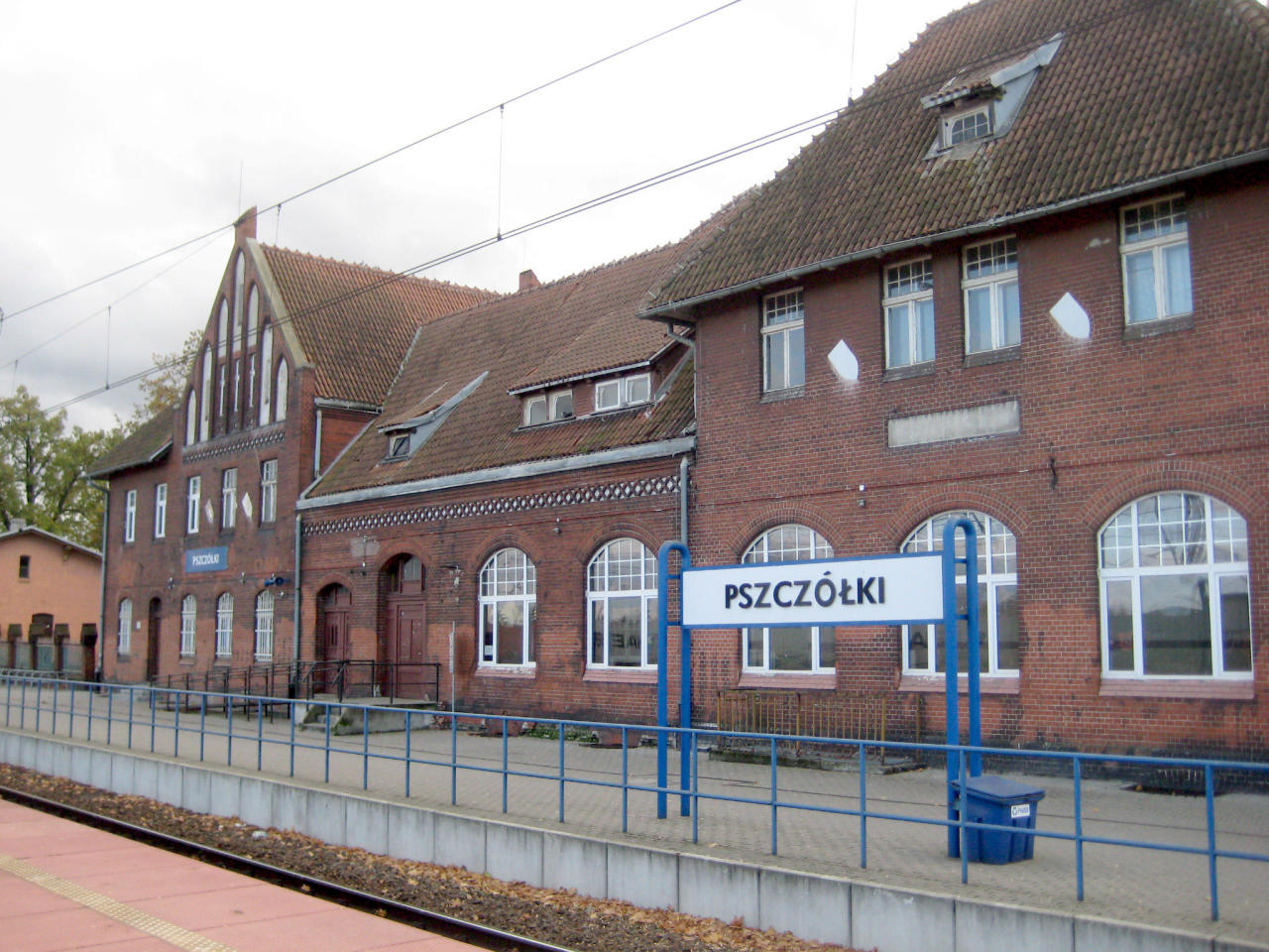 Stacja Pszczółki. W lewo Miłobądz i Tczew, w prawo Skowarcz, Gdańsk, Żelisławki i Skarszewy. Zdjęcie wykonane z pociągu Regio relacji Elbląg – Gdynia Chylonia.