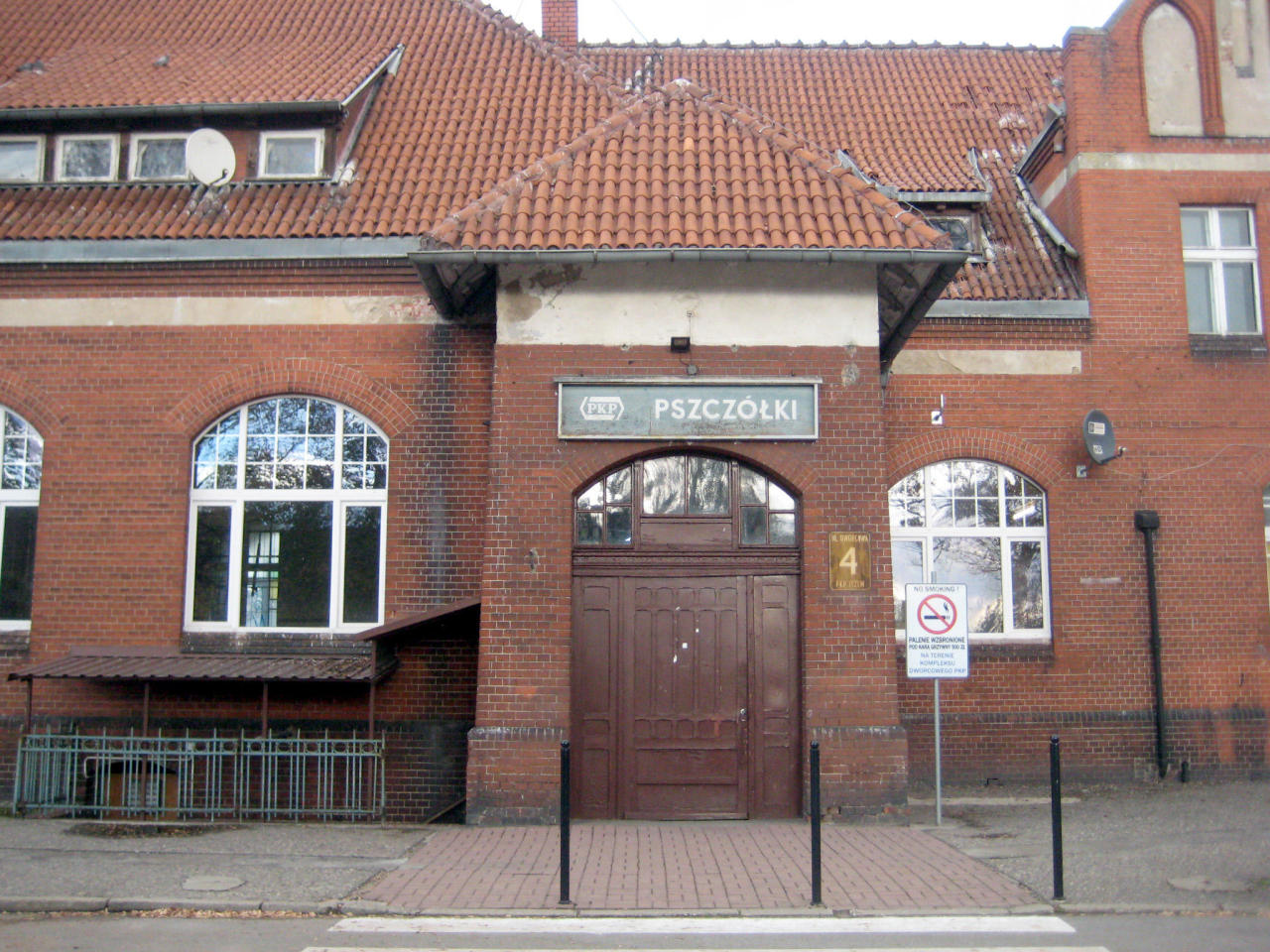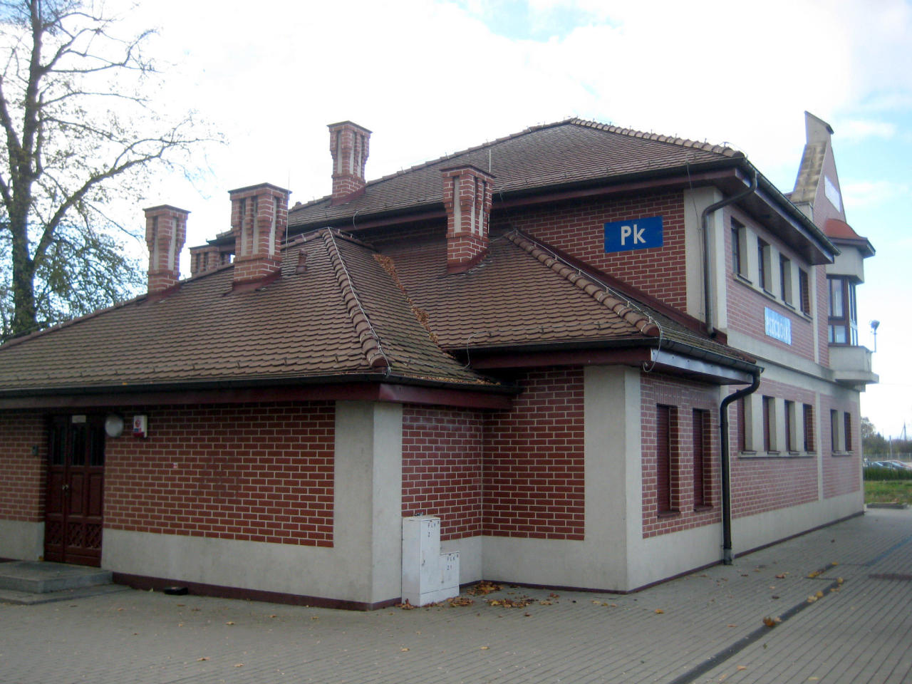 Budynek dworcowy widoczny od strony podjazdu. W lewo Pruszcz Gdański/Gdańsk Główny i (kiedyś) Skarszewy/Kościerzyna, w prawo Tczew.