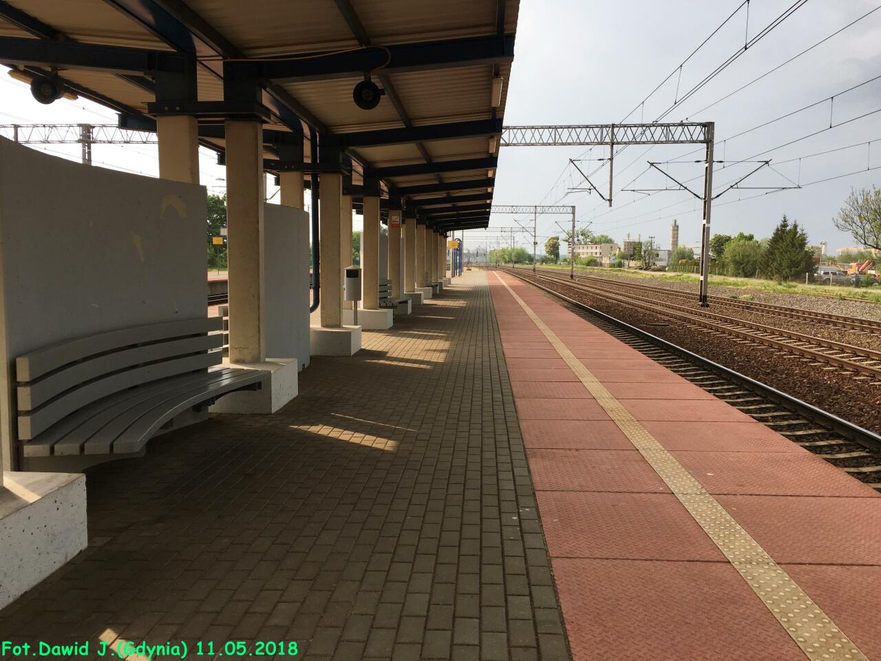 Perony. Widok od strony budynku dworcowego w kierunku Tczewa.
