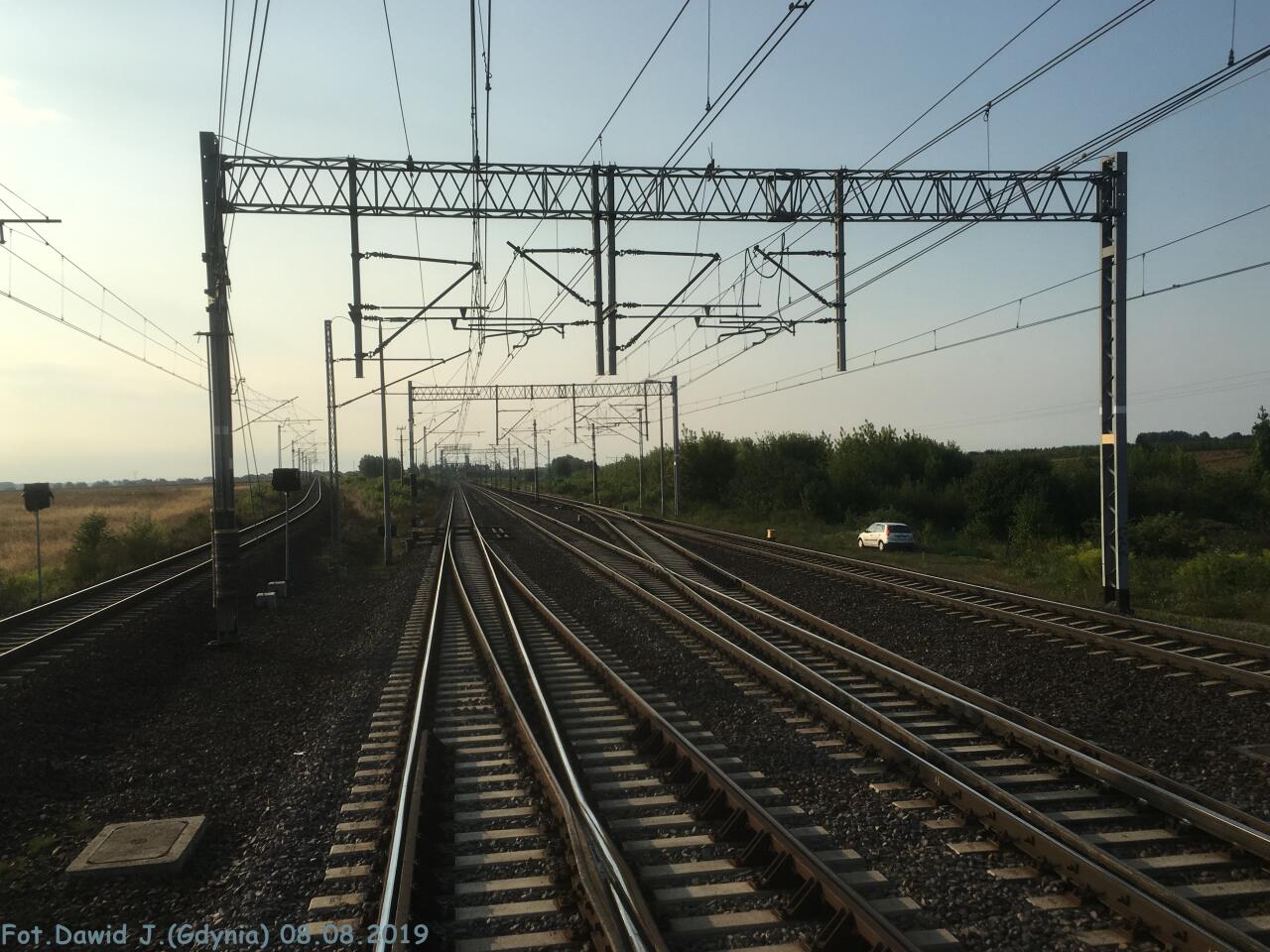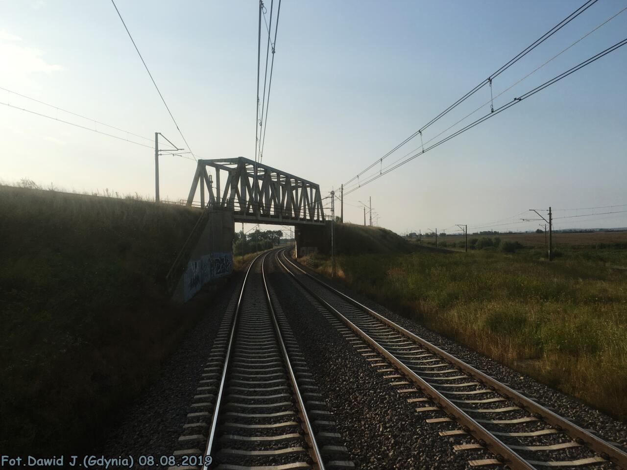 Wyjazd ze stacji w kierunku Tczewa. Wiadukt z linią kolejową nr 260. Na wprost linia kolejowa nr 9 a po prawej linia kolejowa nr 265.