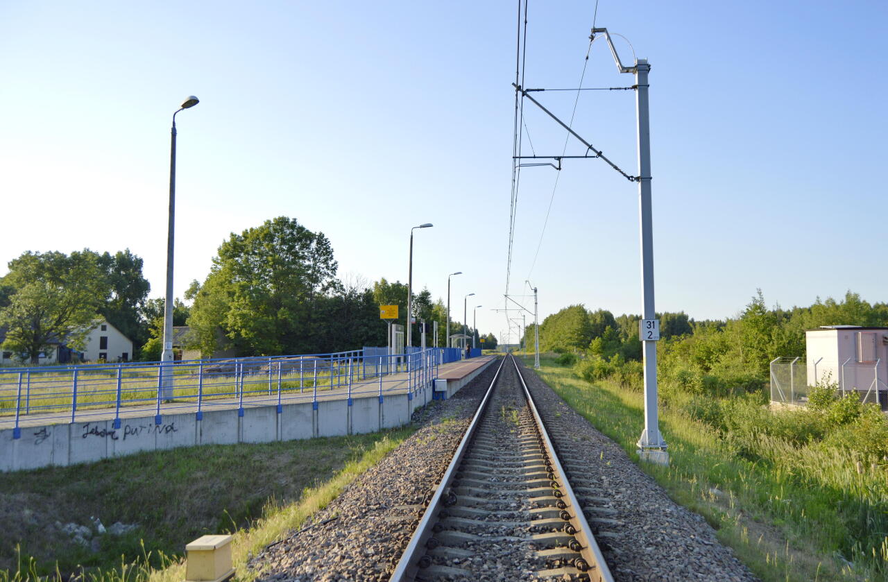 Opis ogólny: Dawniej mijanka, rozjazd od strony Ocic znajdował się około 30,3 km, na jego wysokości po zachodniej stronie toru pozostały ruiny niewielkiego pomieszczenia. Jednak trudno stwierdzić, czy miało ono przeznaczenie kolejowe. Zaniedbane perony porastają chwasty i niewielkie drzewa. W rejonie przejazdu kolejowego można odnaleźć pozostałości po pędniach w postaci wieszaków, jak również fundamenty po budce dróżnika. (info: Dariusz Krysztofiak, 2006-01-28) Opis infrastruktury: Dwa perony długości około 250 metrów o nawierzchni bitumicznej, oświetlenie zdewastowane, pozostały po nim słupy z oprawami lamp. Pozostał plant po drugim torze. (info: Dariusz Krysztofiak, 2006-01-28) Opis budynków: W pobliżu przejazdu kolejowego po zachodniej stronie toru, stoi barak dla robotników. (info: Dariusz Krysztofiak, 2006-01-28). W trakcie modernizacji linii (2009 r.) przystanek uległ przesunięciu. |