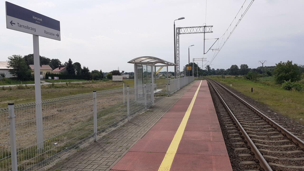 Opis ogólny: Za przystankiem w kierunku Ocic, w około 60,0 km znajdowało się odgałęzienie nieczynnej i częściowo rozebranej bocznicy do fabryki domów i lotniska w Jasionce. Rozjazd został zdemontowany, ale dzięki pozostałością po koźle oporowym i zastosowanym podkładom strunobetonowym można to miejsce odnaleźć. (info: Dariusz Krysztofiak, 2006-01-05) W 2006 roku obiekt posiadał jeden peron niski o długości ok 200 m., wyłożoną płytami chodnikowymi przykrytymi grubą warstwą gleby. Część peronu od strony Rzeszowa położona na łuku porośnięta była niewielkimi drzewami. Po oświetleniu peronu znajdowało się pięć betonowych słupów. Od wykazu 2022/2023 obiekt został awansowany z przystanku na stację. Wraz z budową linii kolejowej nr 626 na stacji wybudowano mijankę wraz z drugim peronem. |
