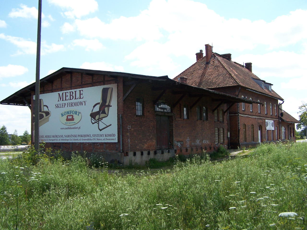 Stacja posiadała pełen zakres czynności ekspedycyjnych, także w niedziele, z możliwością odprawy zwierząt w wagonach jednopodłogowych, po roku 1978 odprawa osób i bagażu. Stacja posiadała bufet na dworcu. (info: Grzegorz Mularczyk, 17-09-2013) Wycięto tory na przejeździe kolejowym. W ich miejscu powstaje rondo. Odcinek Mirotki - Skórcz nieprzejezdny. (info: Grzegorz ze Smętowa, 10-09-2011) Dawniej na stacji istniały skrajnik, rampa czołowa i boczna, kolejowa waga wagonowa o nośności do 30t i dźwig stały o udźwigu 1,25t. (info: Grzegorz Mularczyk, 17-09-2013) |