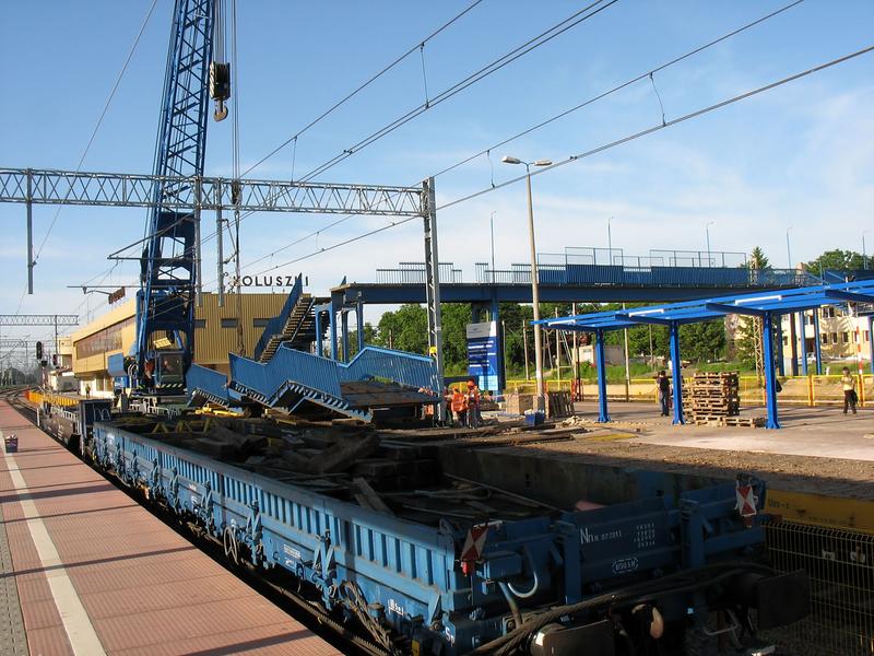 Schody ruchome: brak; Windy: czynne; Przejście podziemne: czynne; Przejście nadziemne: W dniu 27.05.2008 roku pracownicy Pociągu Ratunkowego - Zakładu Linii Kolejowych w Łodzi przystąpili do demontażu mostu - kładki dla pieszych. Tego samego dniu udostępniono podziemne przejście dla pieszych. Został zakończony ponad 100 letni okres nazywania mieszkańców Koluszek mieszkających po przeciwnych stronach torów kolejowych "ZAMOŚCIAKI". Również zniknie określenie: "ZA MOSTEM". Chyba nie przyjmą się nowe określenie związane z wybudowanym tunelem: "ZA TUNELEM", "ZATUNELAKI".(info od: J.Jędrzejek, 2008-05-30) 2006: Kładka, czyli popularny most, jest drugim po "Grzybku" miejscem, bardzo charakterystycznym i rozpoznawalnym w Koluszkach. Jego istnienie od wielu pokoleń dzieli nasze zacne miasteczko na dwie części (część "starszą" miasta od nowej). Powiedzenie - idę "za most", jest używane po obu stronach, choć od zawsze bywa to kwestią naszych lokalnych sporów o to, kto właściwie mieszka za mostem. (info: Jacek Saganowski) |