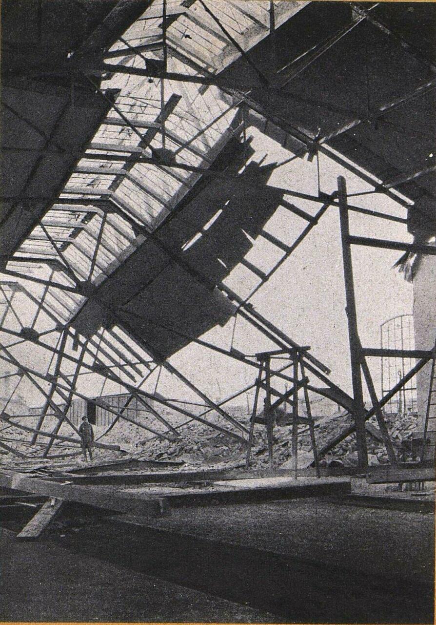 Zniszczenia wojenne lokomotywowni w Skierniewicach.