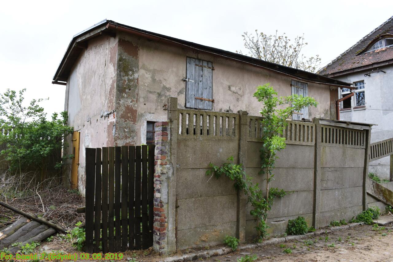 Kolejowy budynek mieszkalny (ul. Kolejowa 6) widoczny od strony podjazdu. Widok w kierunku Tucholi/Działdowa.