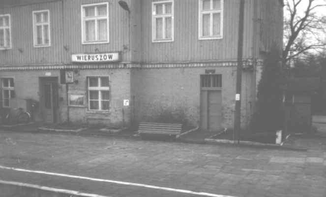 Wieruszów. Wieruszów. Dworzec kolejowy, widok z ul. Ostrzeszowskiej.